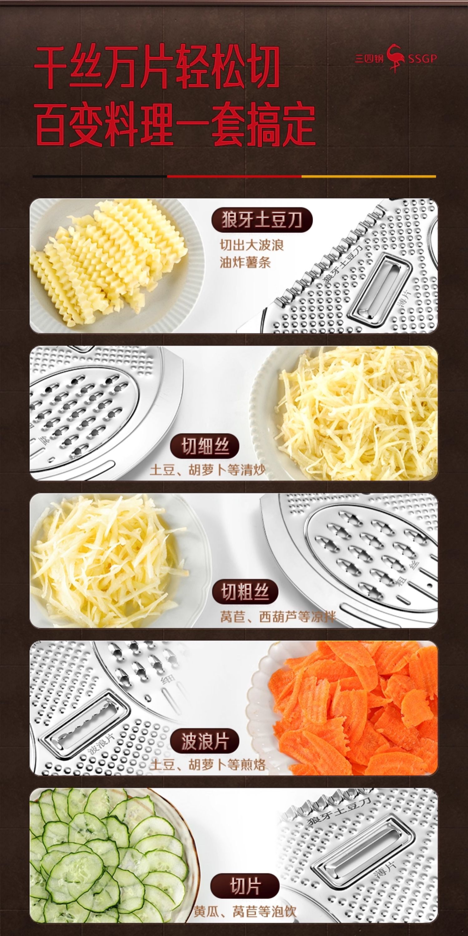 三四鋼多機能野菜切り器家庭用キッチンスライサー糸拭き器マッシュポテト大根削り器