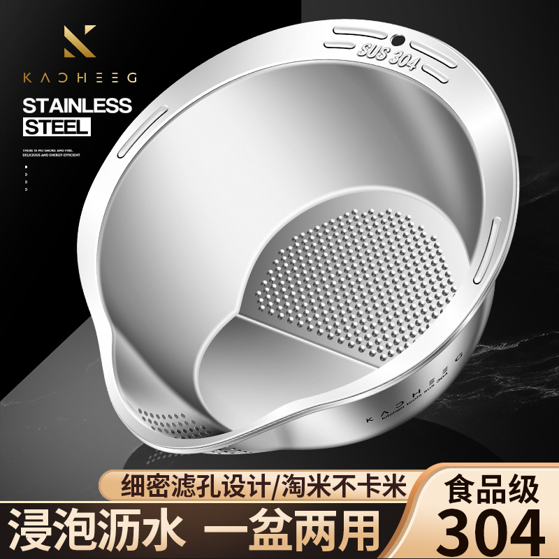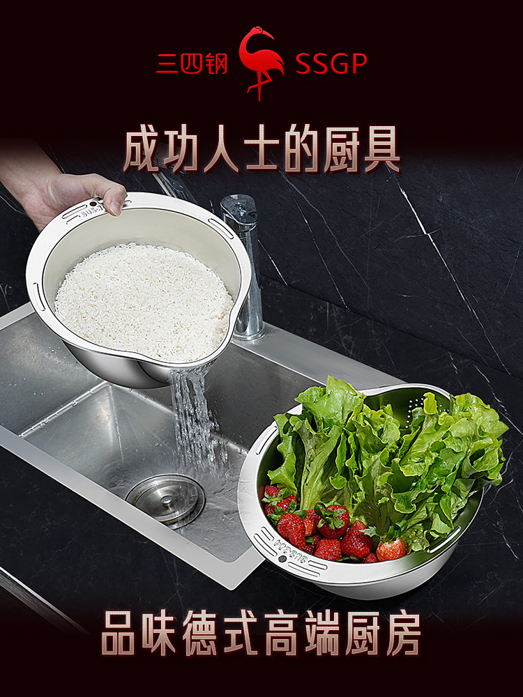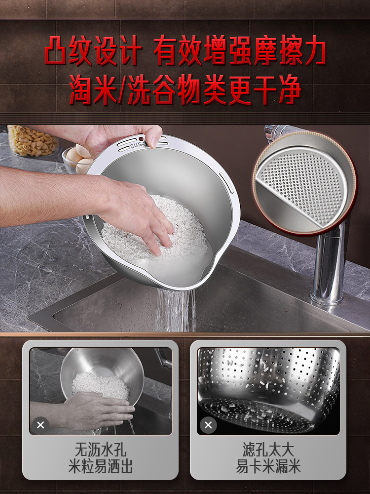 34鋼排水盆地、Douyin人気の米と野菜の洗い桶、米洗い桶、排水バスケット、食品グレードのステンレス鋼の排水盆地