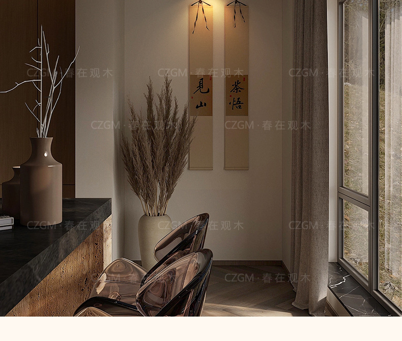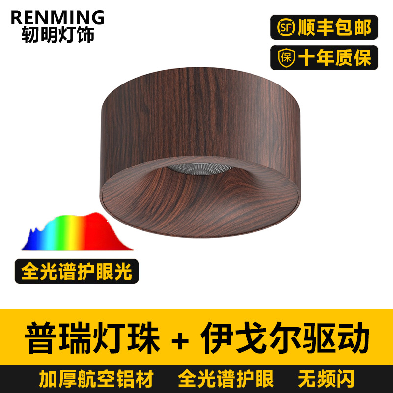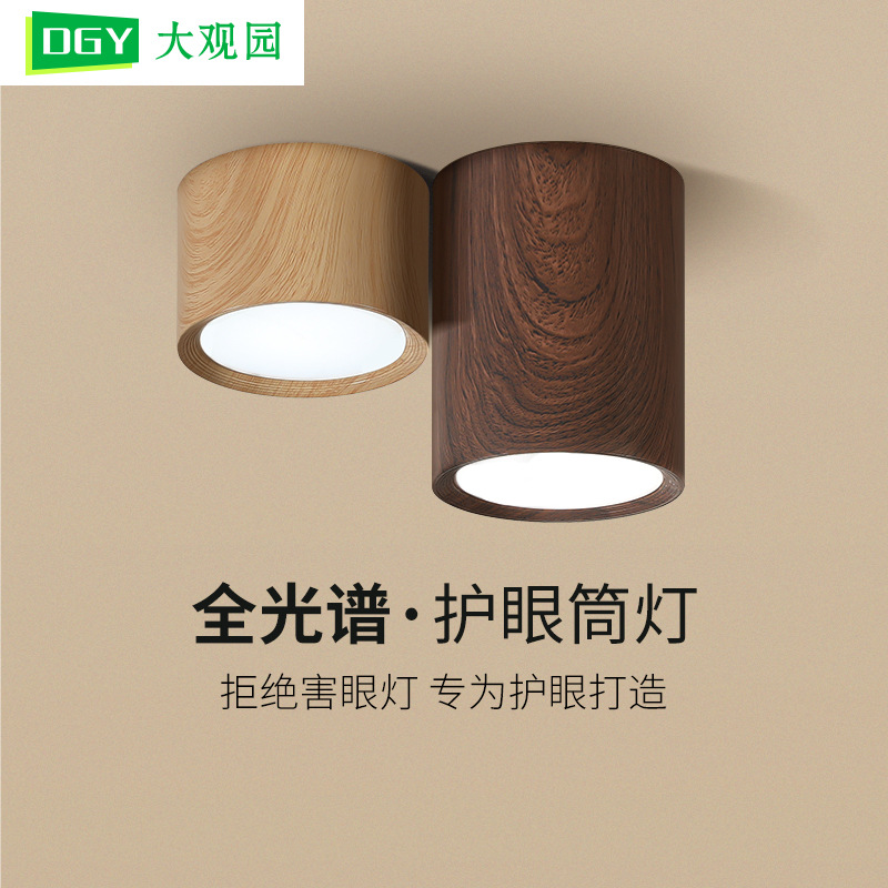 明装客厅筒灯复古新中式胡桃木纹无主灯全光谱护眼防眩玄关