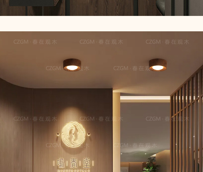 胡桃木筒灯明装复古新中式全光谱护眼走廊过道玄关灯led无主灯铝