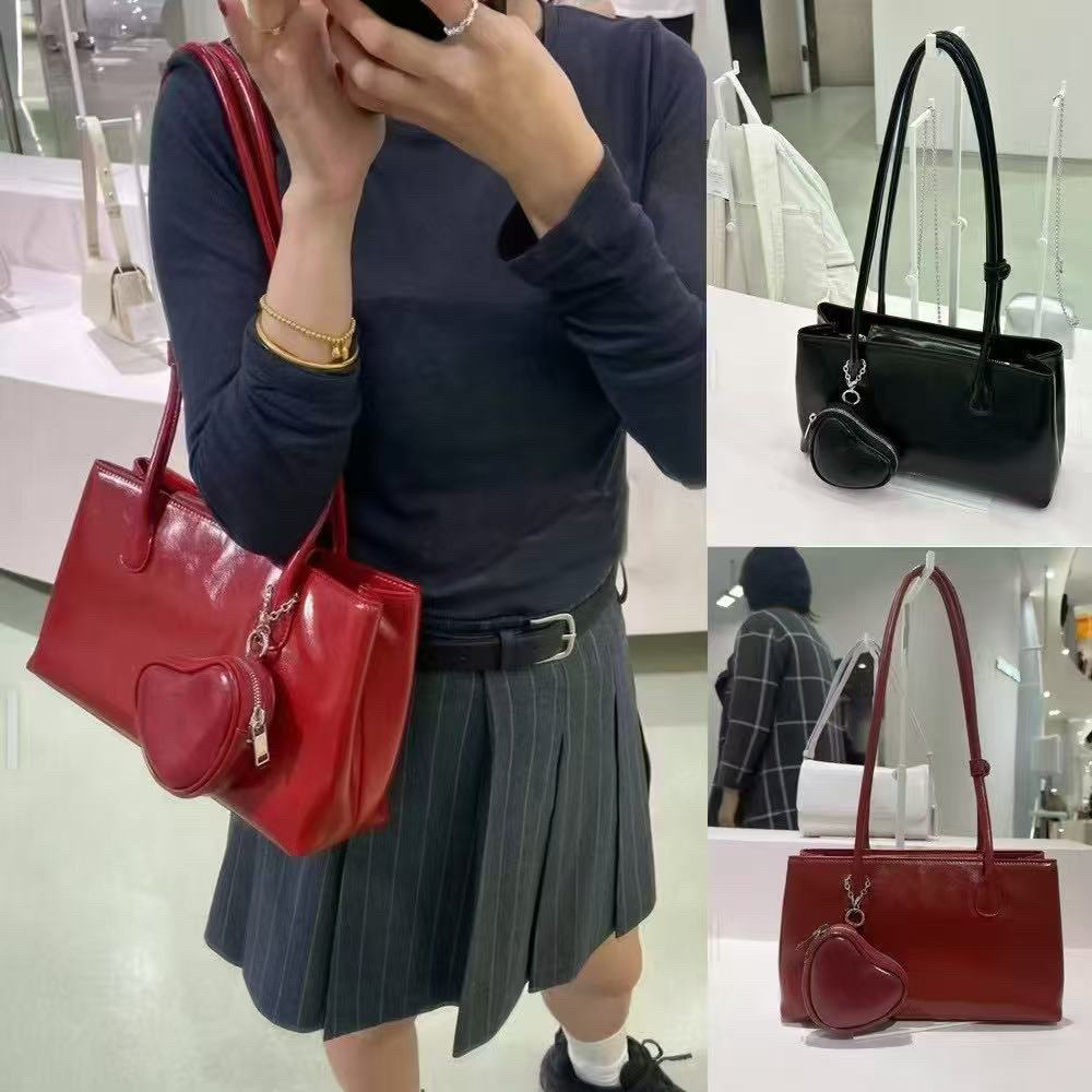 2025新型レトロ紅愛ペンダント小方包法棒包油蝋亮面質感特包
