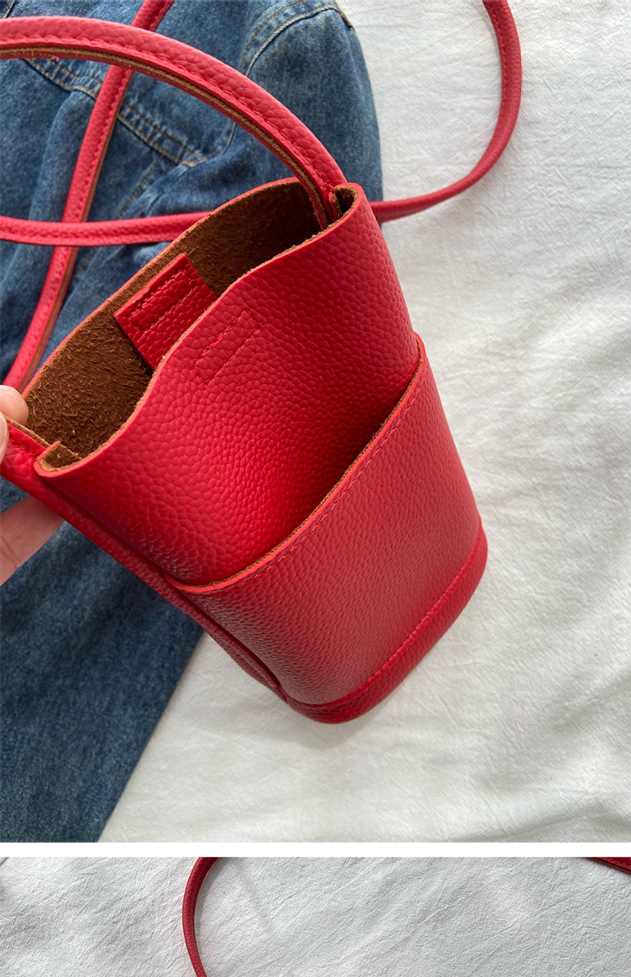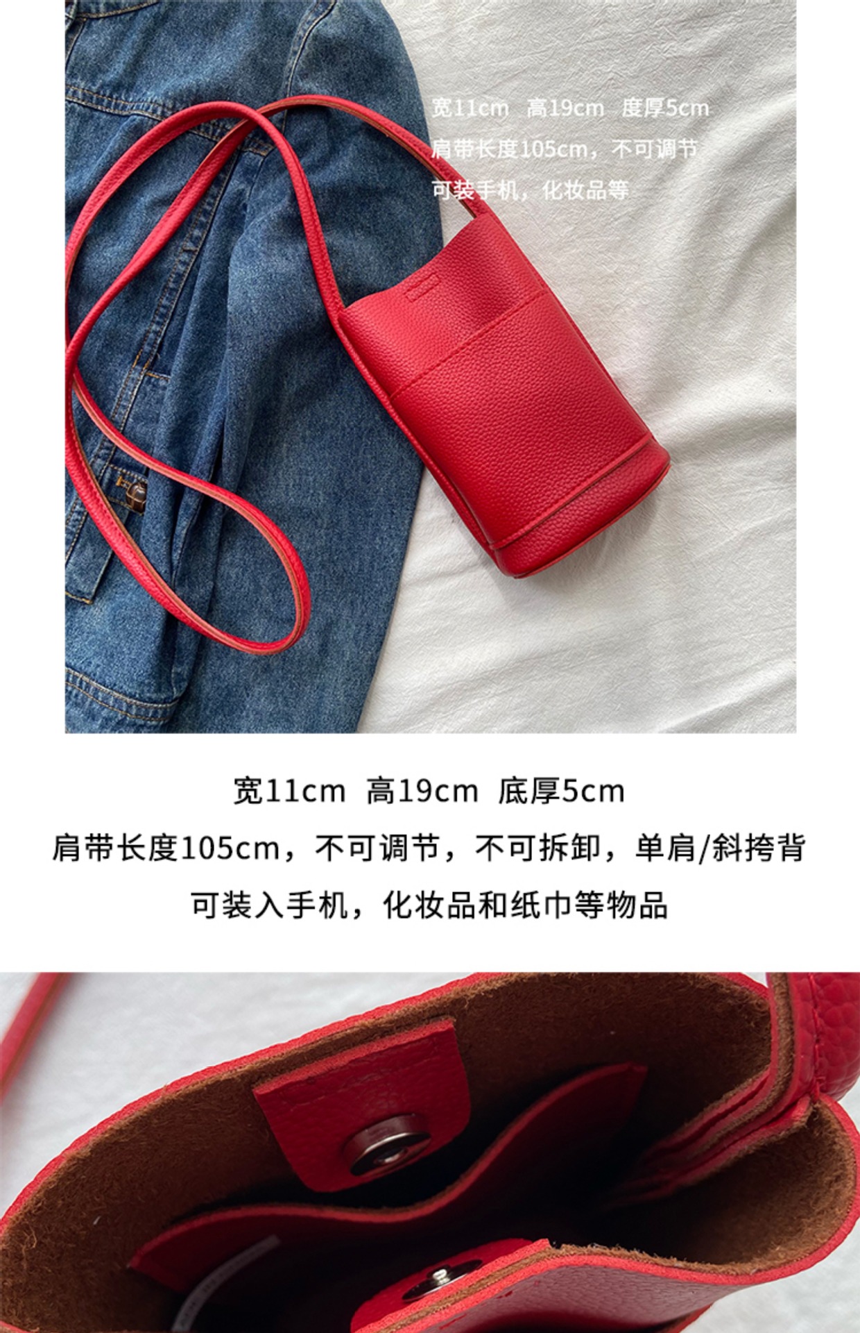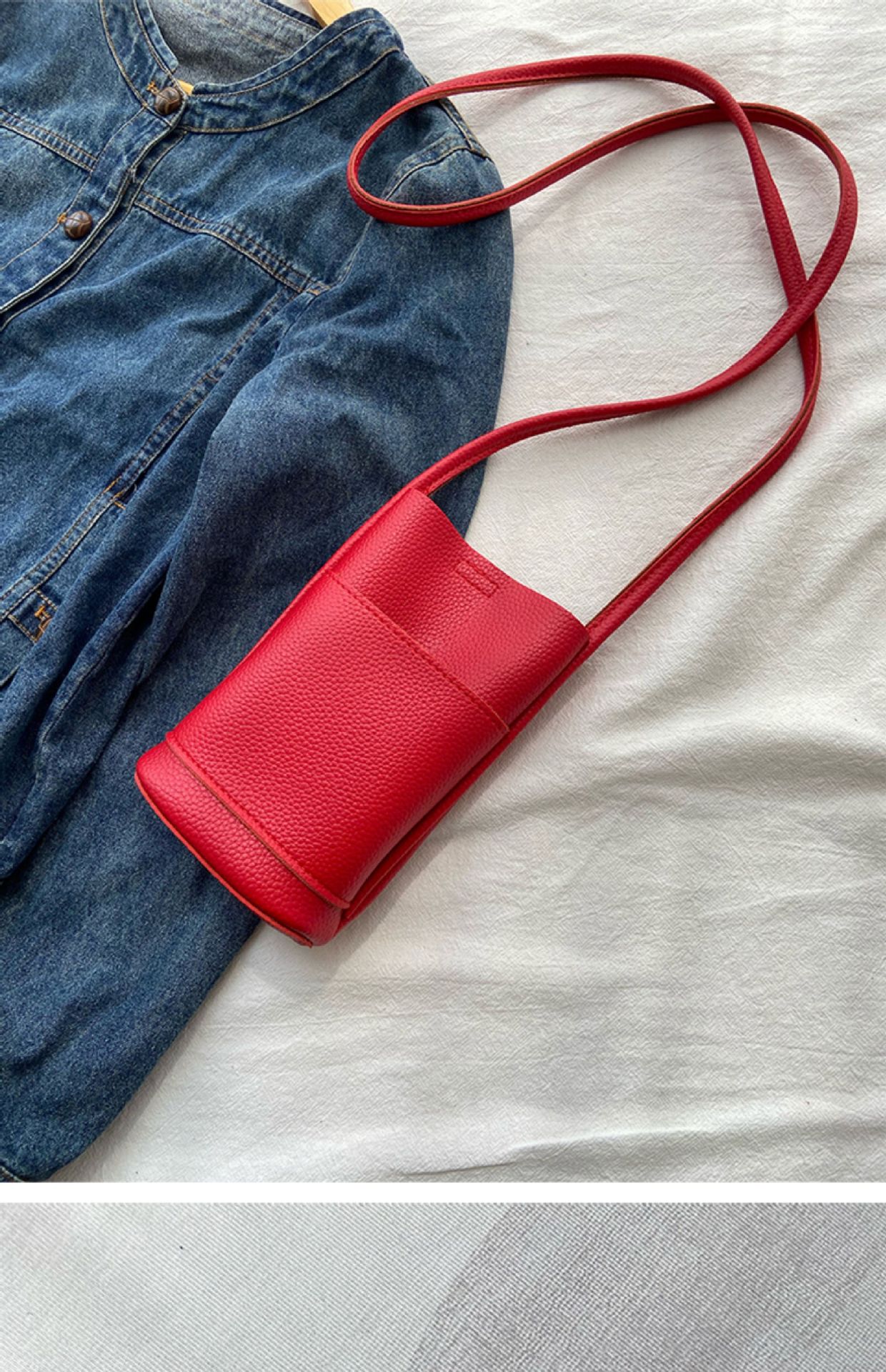 クロスボーダーハイエンドソフトレザークロスボディ女性の携帯電話バッグ2025新しい通勤シンプルなショルダーバケットバッグ小さなバッグ