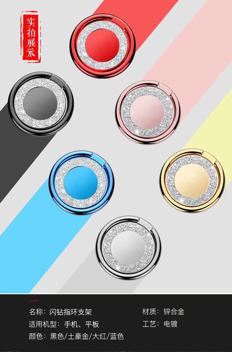 跨境新品闪粉手机指环支架手机支架圆形指环扣ins散粉创意圆形