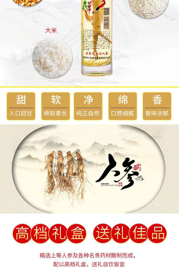 長白山人参酒1000ml純食糧酒52度東北老参王ギフト酒箱白酒生参卸売り