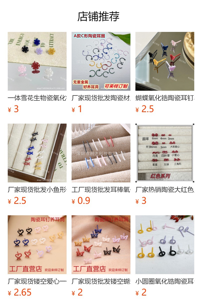 メーカー直販卸売ジルコニアセラミック製ニッチな6種類の幾何学模様ハート型イヤリング、重金属不使用で耳穴に優しい。