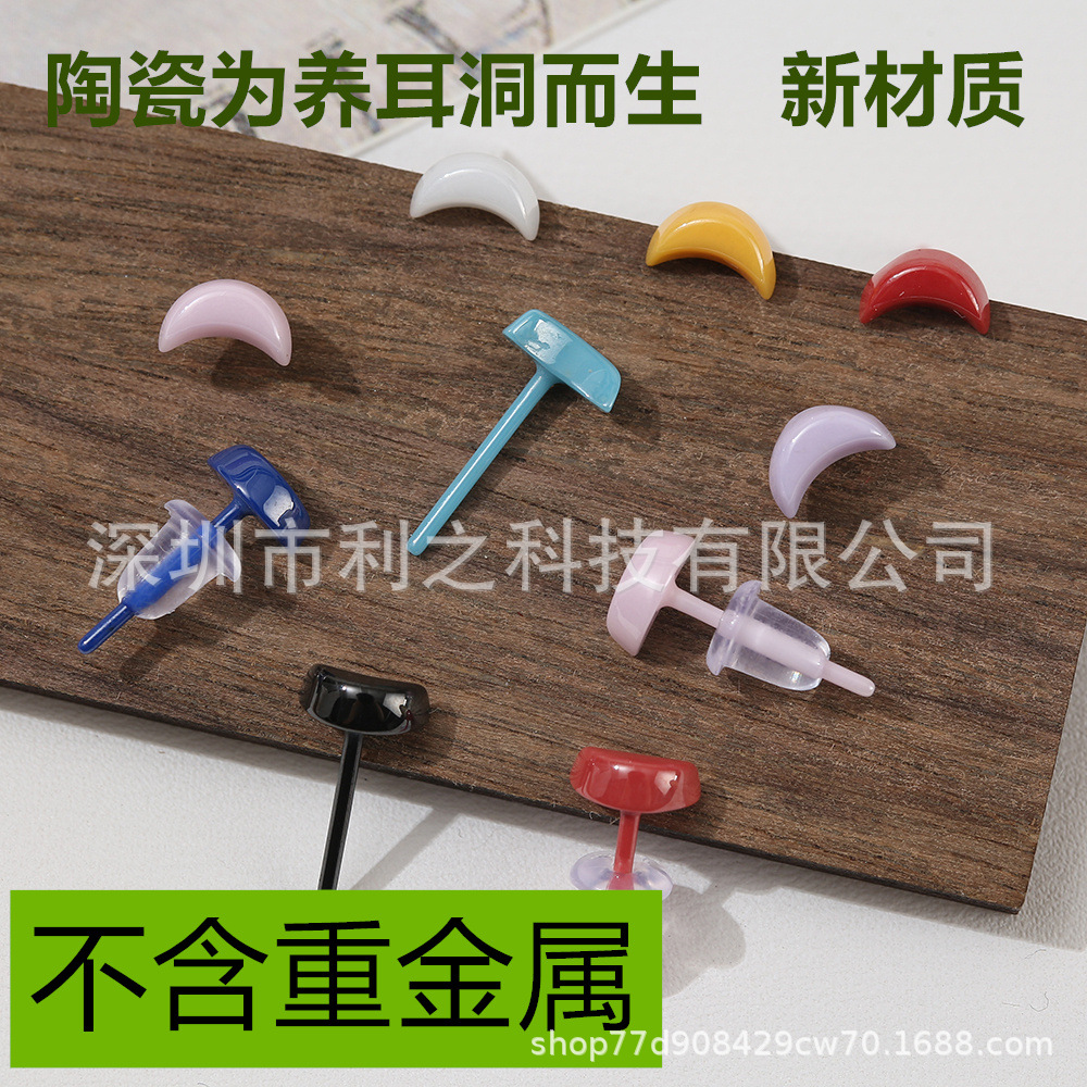 女性用イヤリング、ラブムーン、耳ピアス用バイオ磁器イヤリング、オールセラミックボーンネイル、セラミックイヤースティック、カラーイヤリング、イヤリング