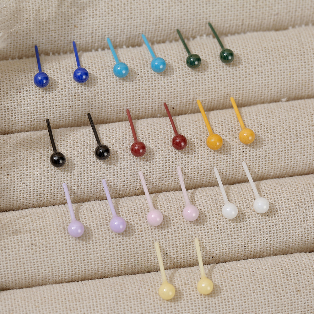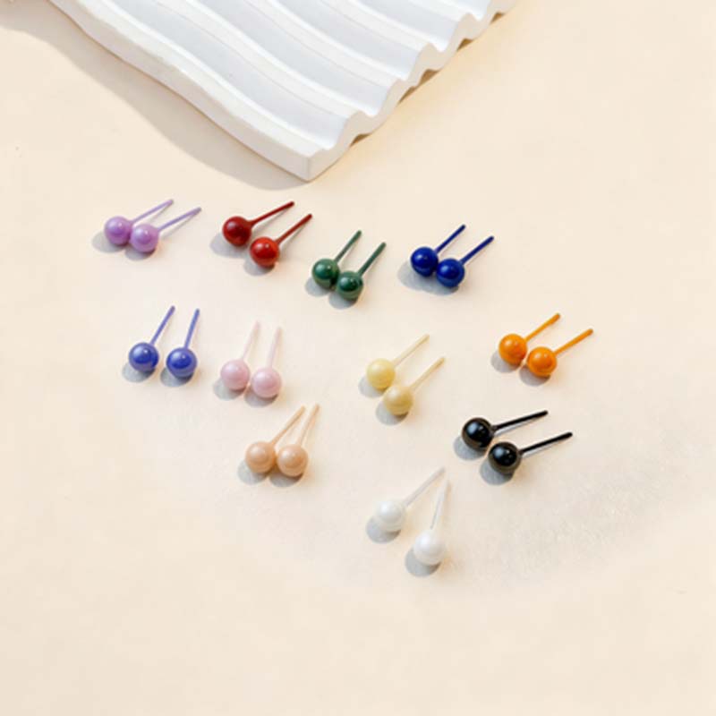 4MM丸型ジルコニアセラミックイヤリング、1.2mmイヤーピン、耳穴ケア、キャンディーカラー、詰まり防止、就寝時も外す必要なし、太めピン