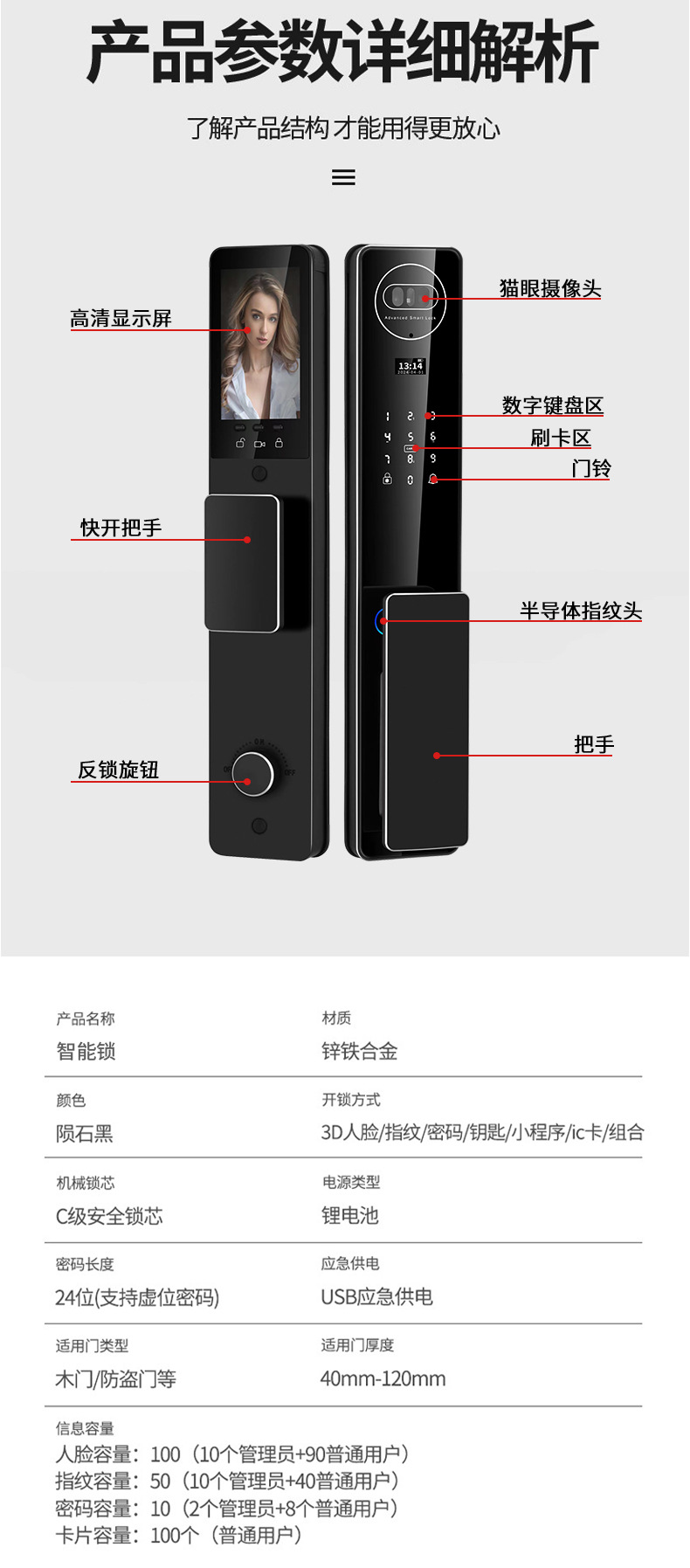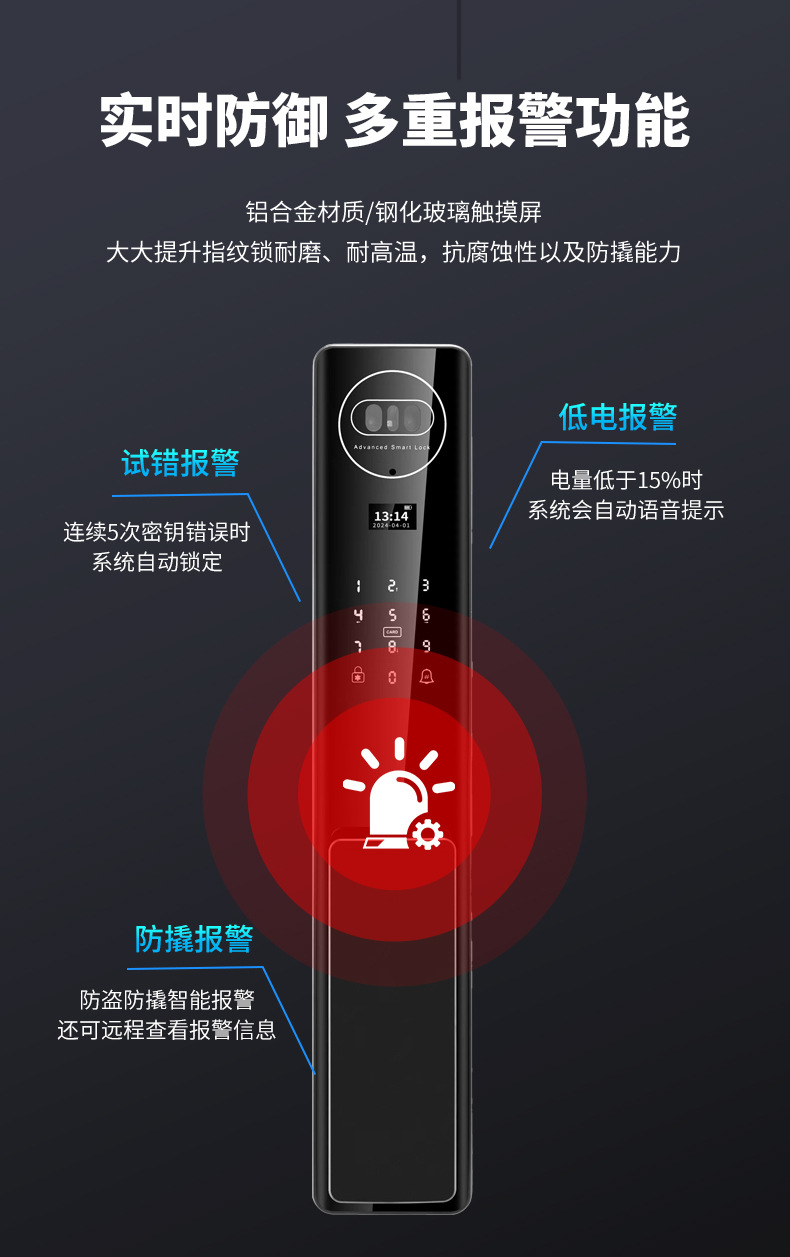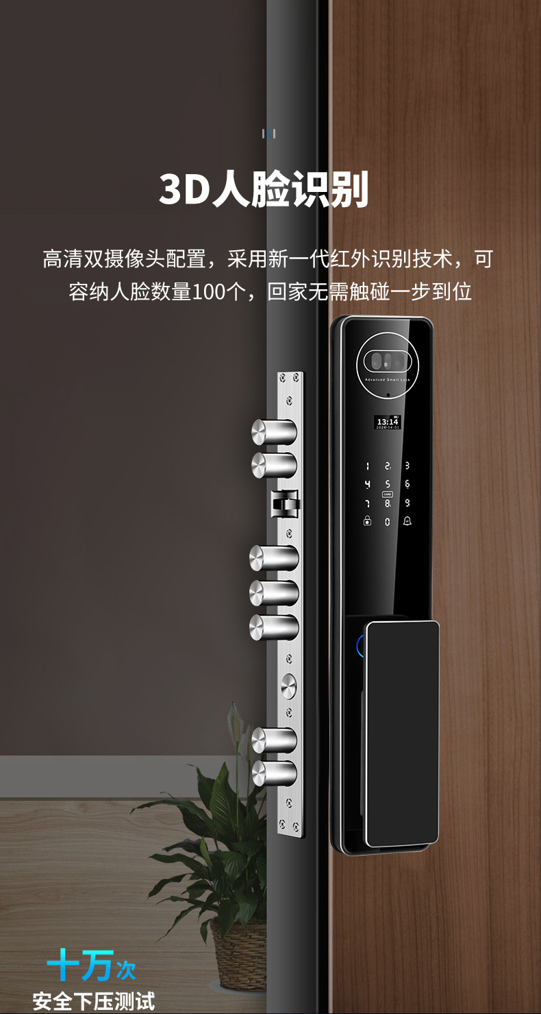 3d顔認識スマートロック全自動指紋ロック家庭用防犯ドアパスワードロック電子ロック監視カメラ