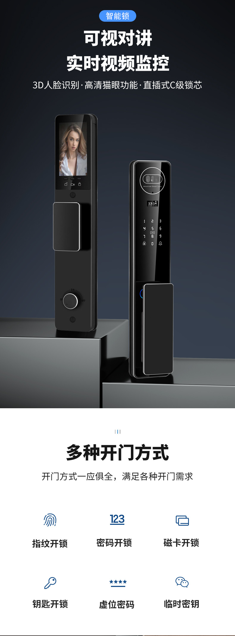 新型家庭用全自動指紋ロック盗難防止ドア顔認識スマートロック監視猫眼暗号ロック電子ロック