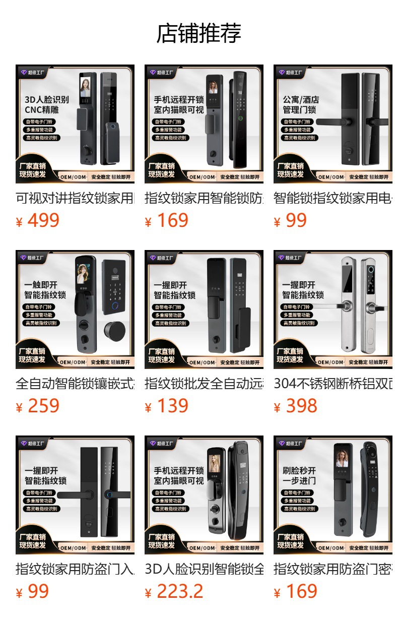 指紋ロック、全自動リモート猫目ロック、パスワード付きビジュアル電子ロック、顔認証スマートロック、メーカー製盗難防止ドアロック