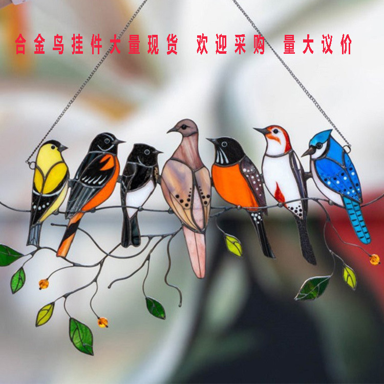 合金カラー芸術両面油窓掛け七羽鳥六鳥四鳥群鳥アクリルペンダント