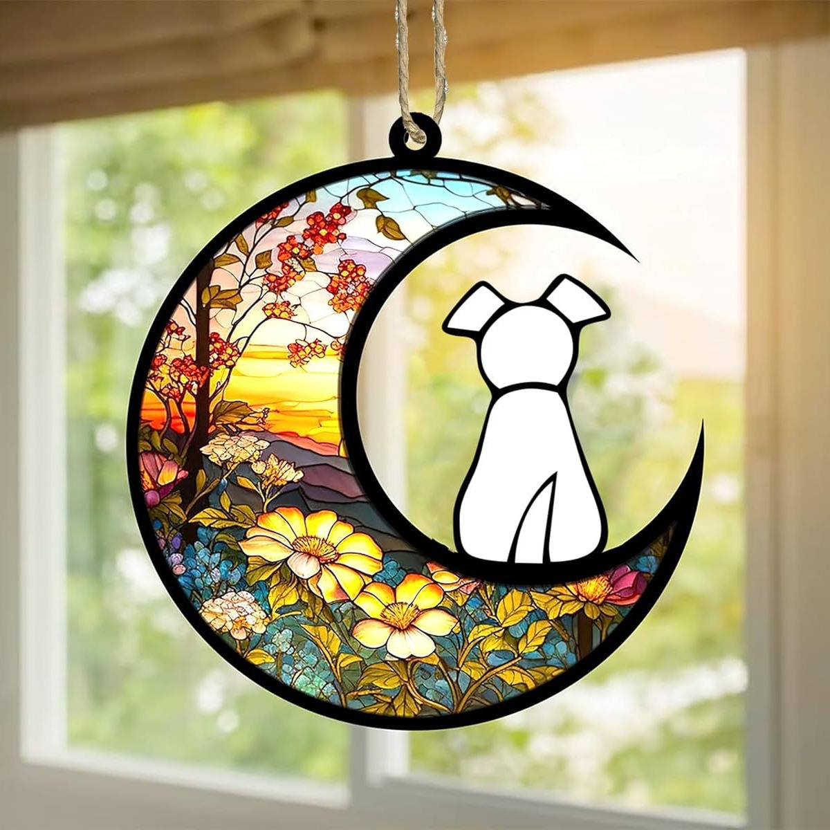 犬記念プレゼント月の犬カラーガラス窓吊り下げキャッチャーペット記念同情プレゼント