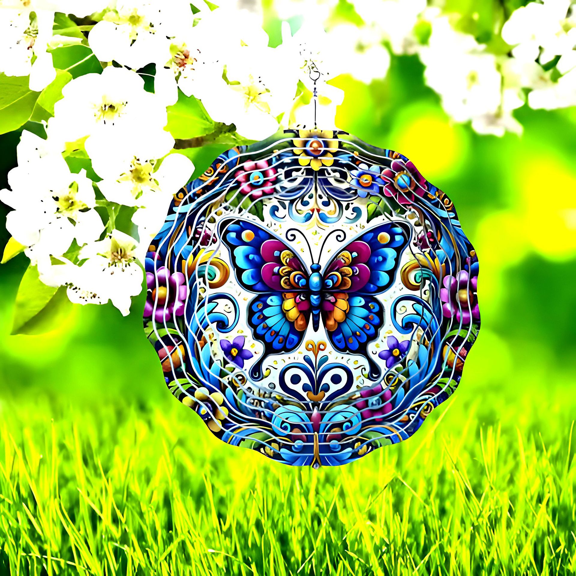 ステンレス3D蝶風力回転器は庭の独特なプレゼント装飾品3D回転風鈴にぶら下がっている