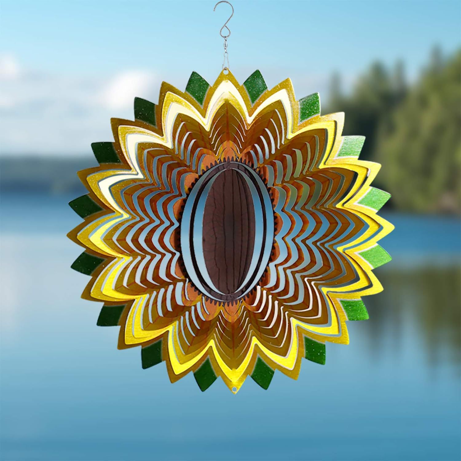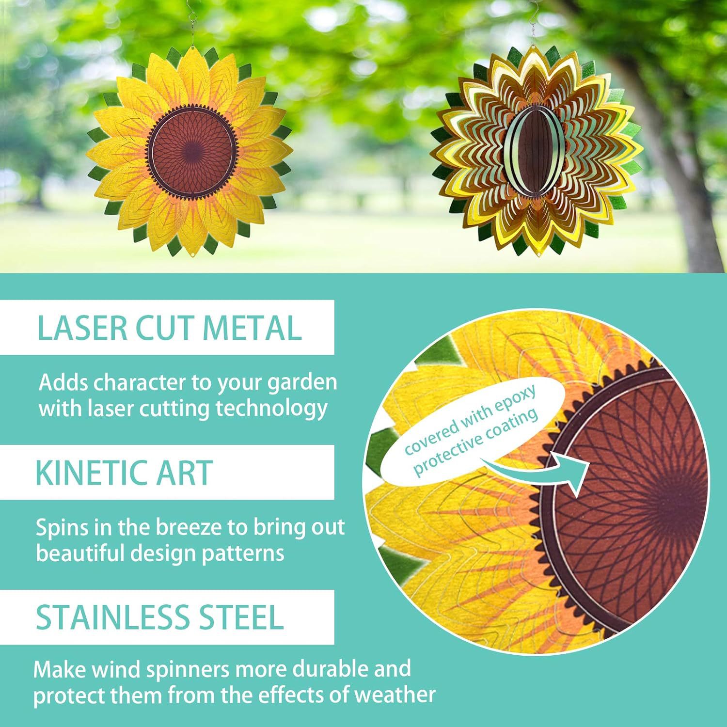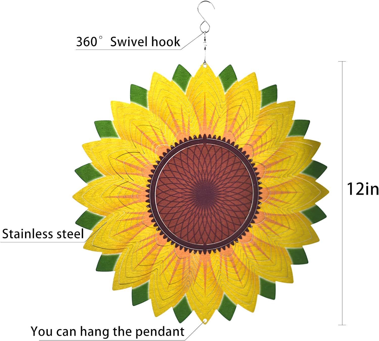 ひまわり風力回転器庭芸術花園装飾3dステンレスひまわりダイナミック吊り下げ装飾品