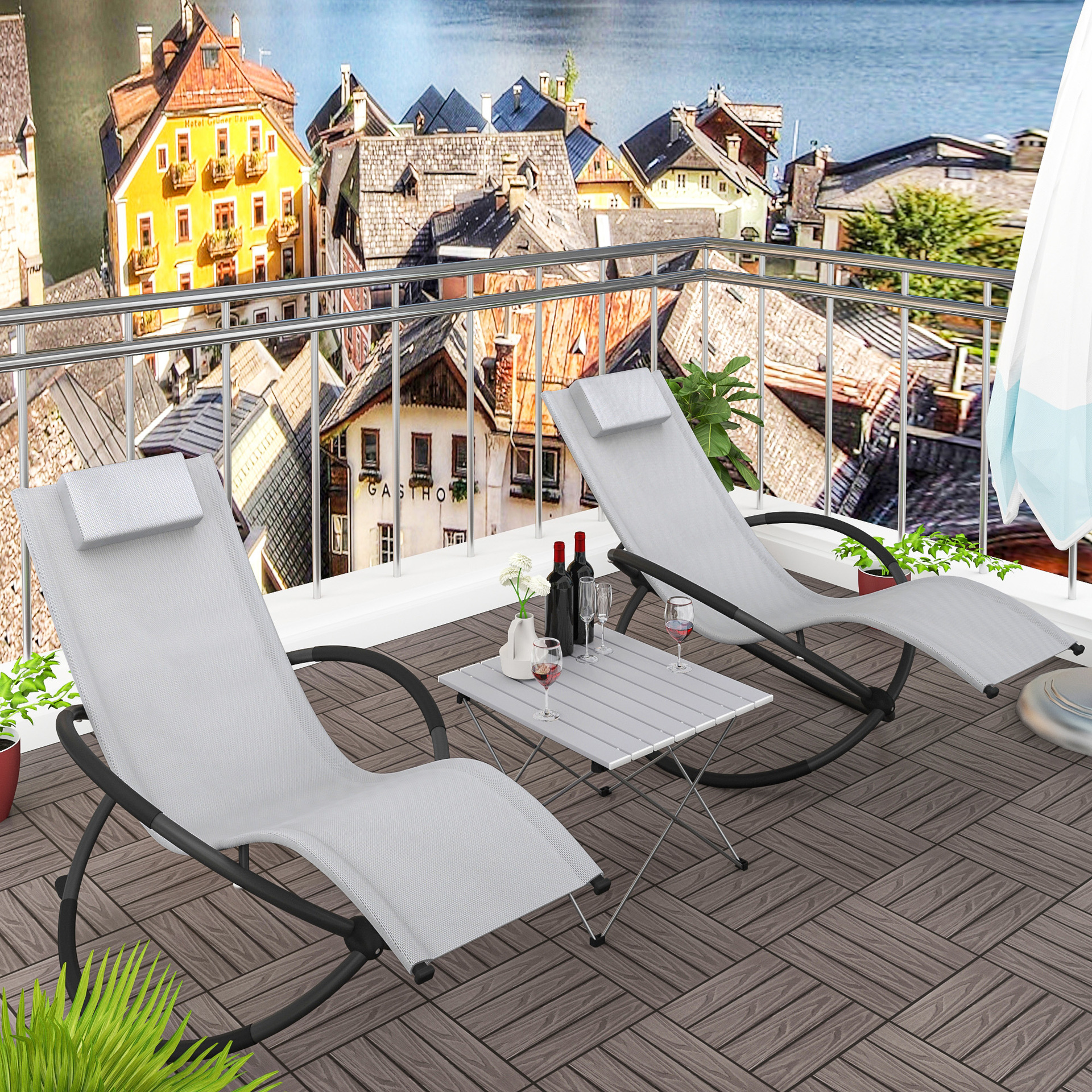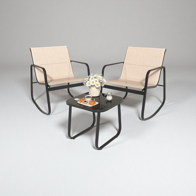 屋外用椅子セット、中庭用椅子、ガーデンパティオチェア、ロッキングチェア、鉄製テキスタイルリクライニングチェア、B&Bコーヒーショップシート