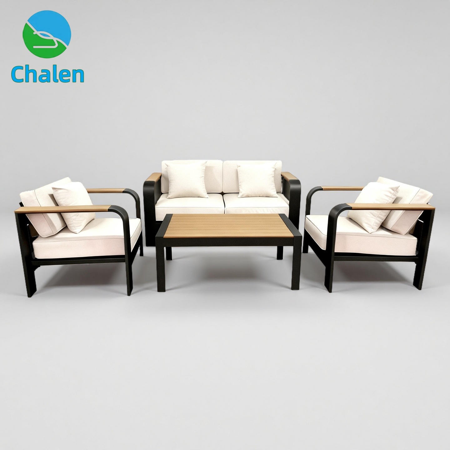 屋外ソファ 4 ピースガーデンパティオソファセットアルミプラスチック木製家具ソファセットとティーテーブルの組み合わせ