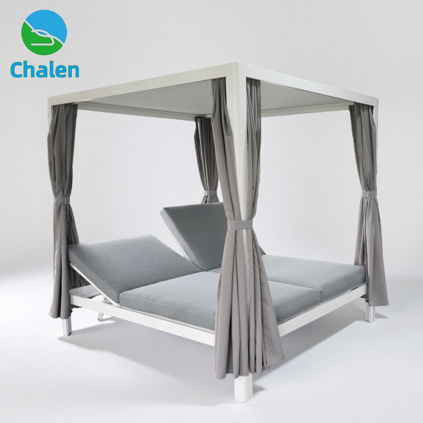 屋外リクライニングベッドダブルリクライニングベッドアルミフレームパティオガーデンキャノピーサンラウンジャービーチチェアベッド