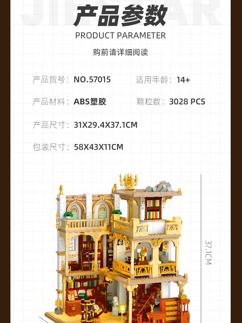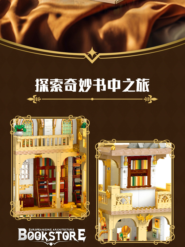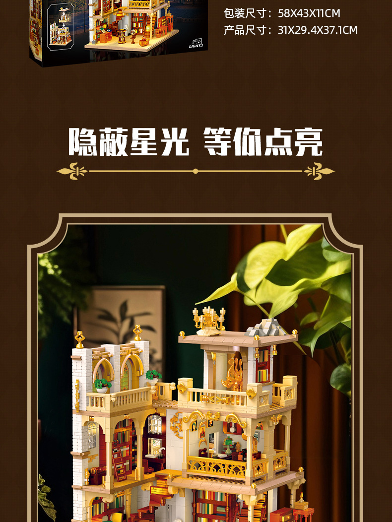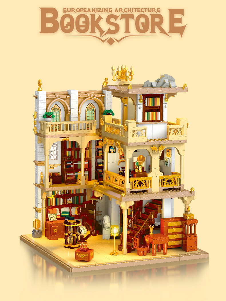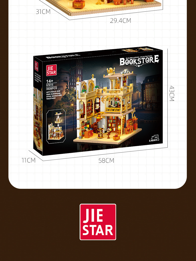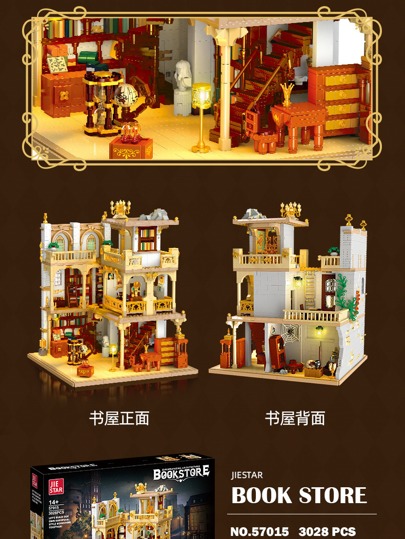 速売通新商品玩具メーカー直供傑星57015大型建築積み木DIY相乗りライト付き本屋