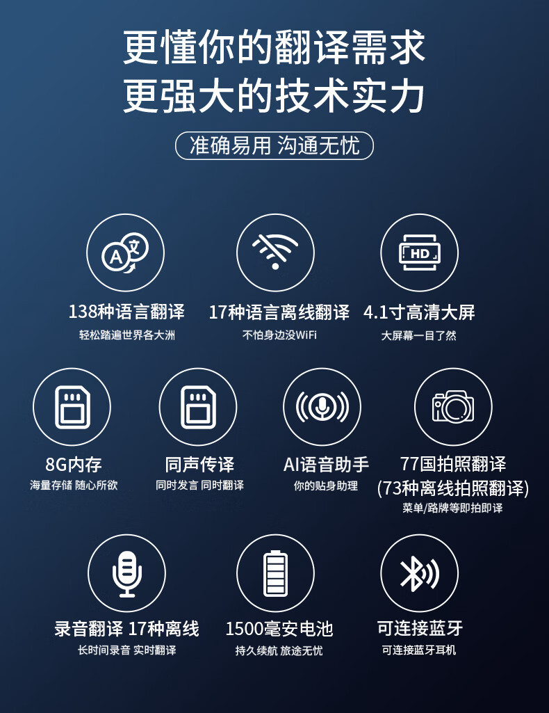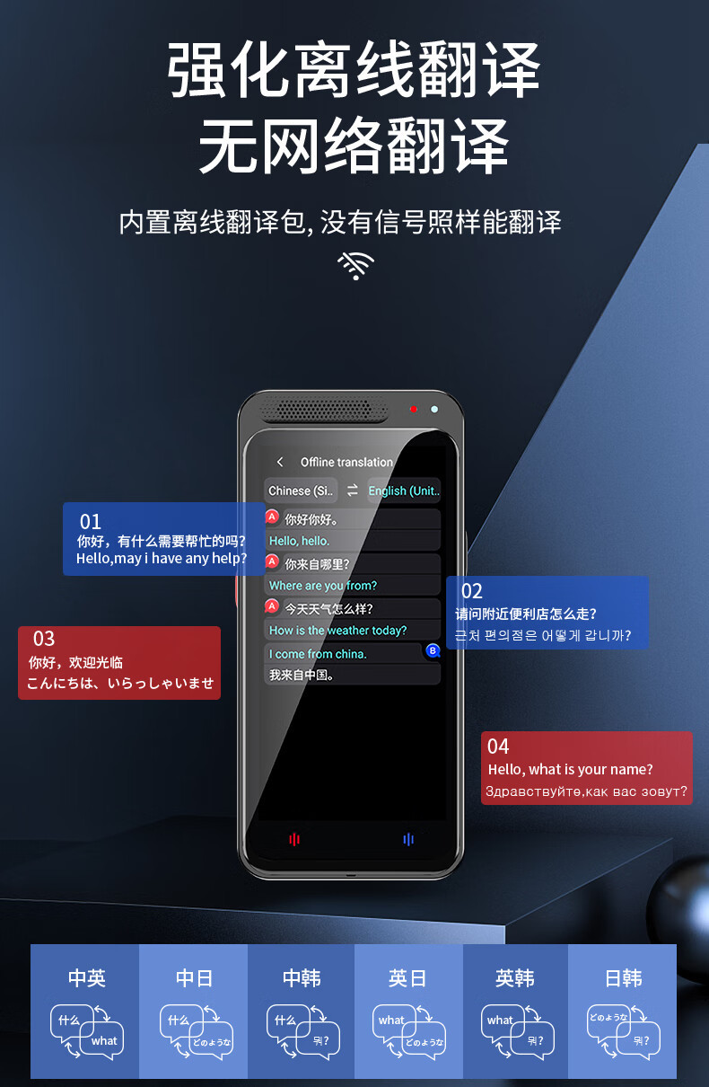 4g版aiスマート音声翻訳機精確オフラインサポート139カ国語出張オフィス旅行翻訳機