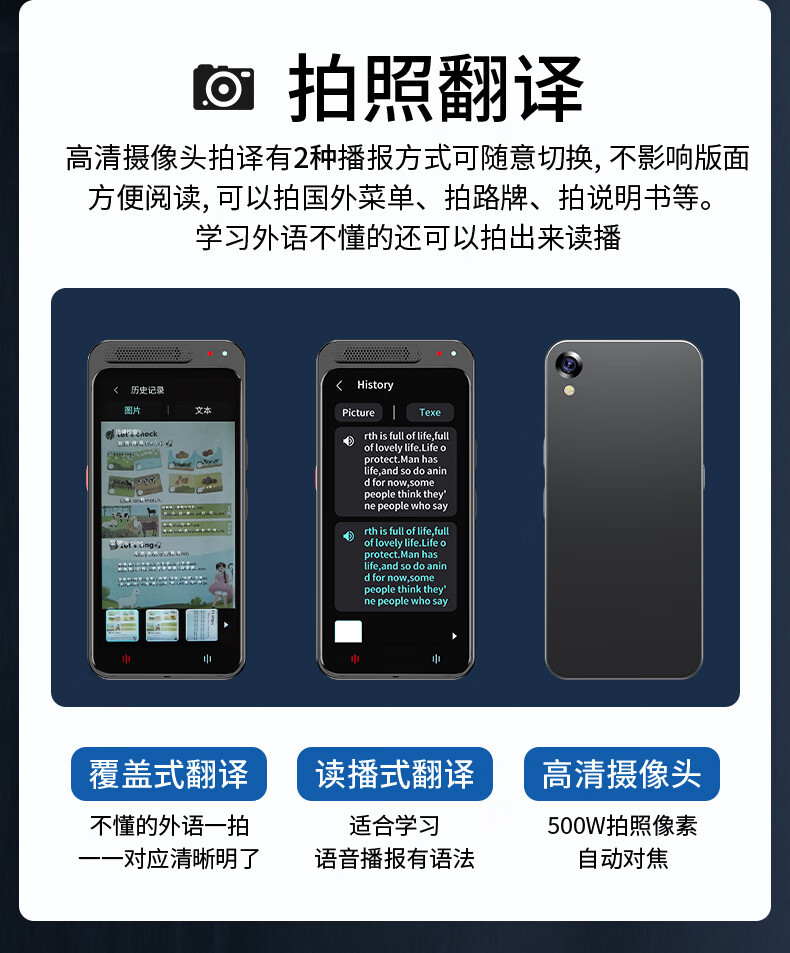 スマート音声翻訳機Z12W多言語同時翻訳機精確オフライン海外旅行写真撮影