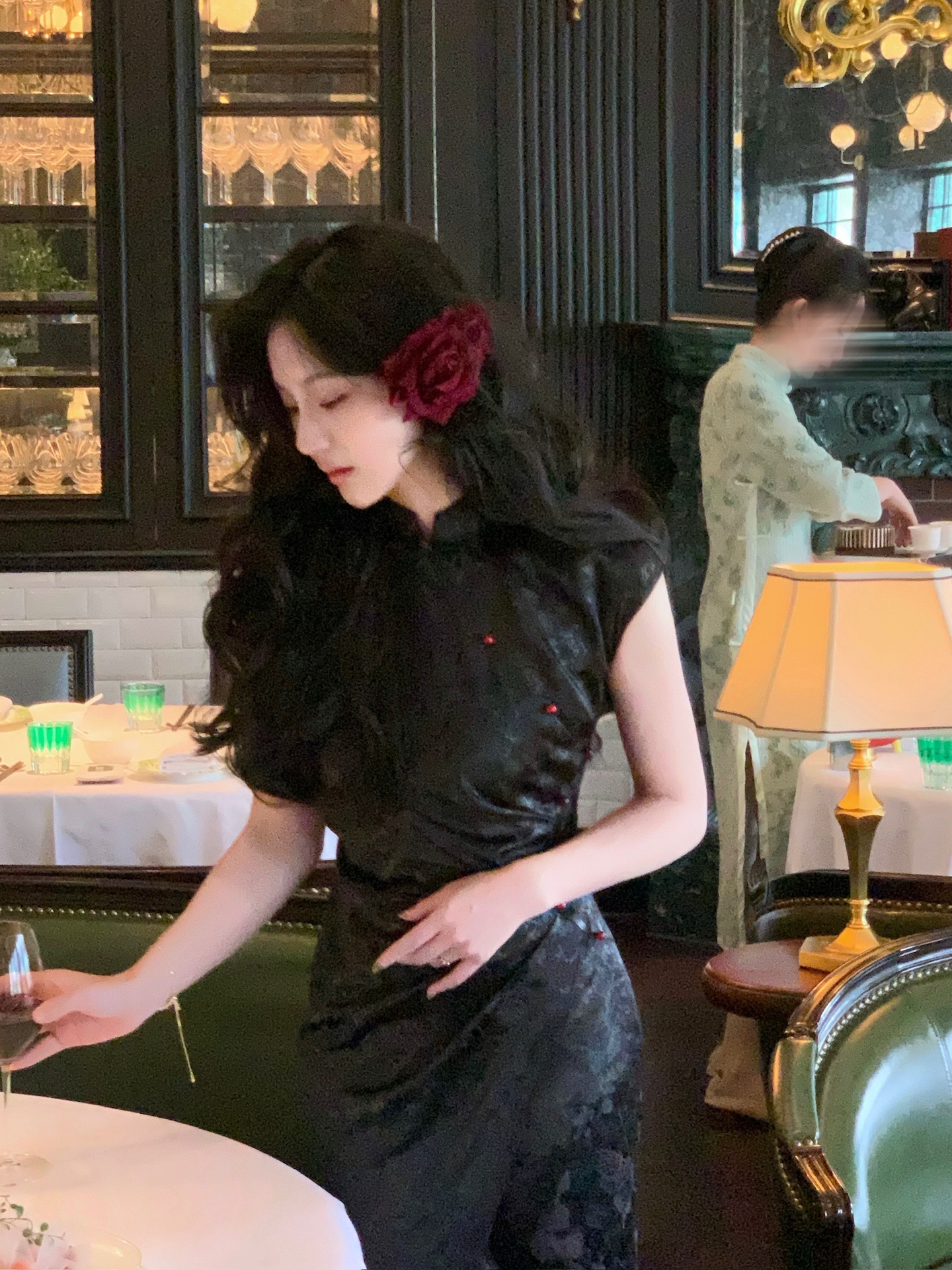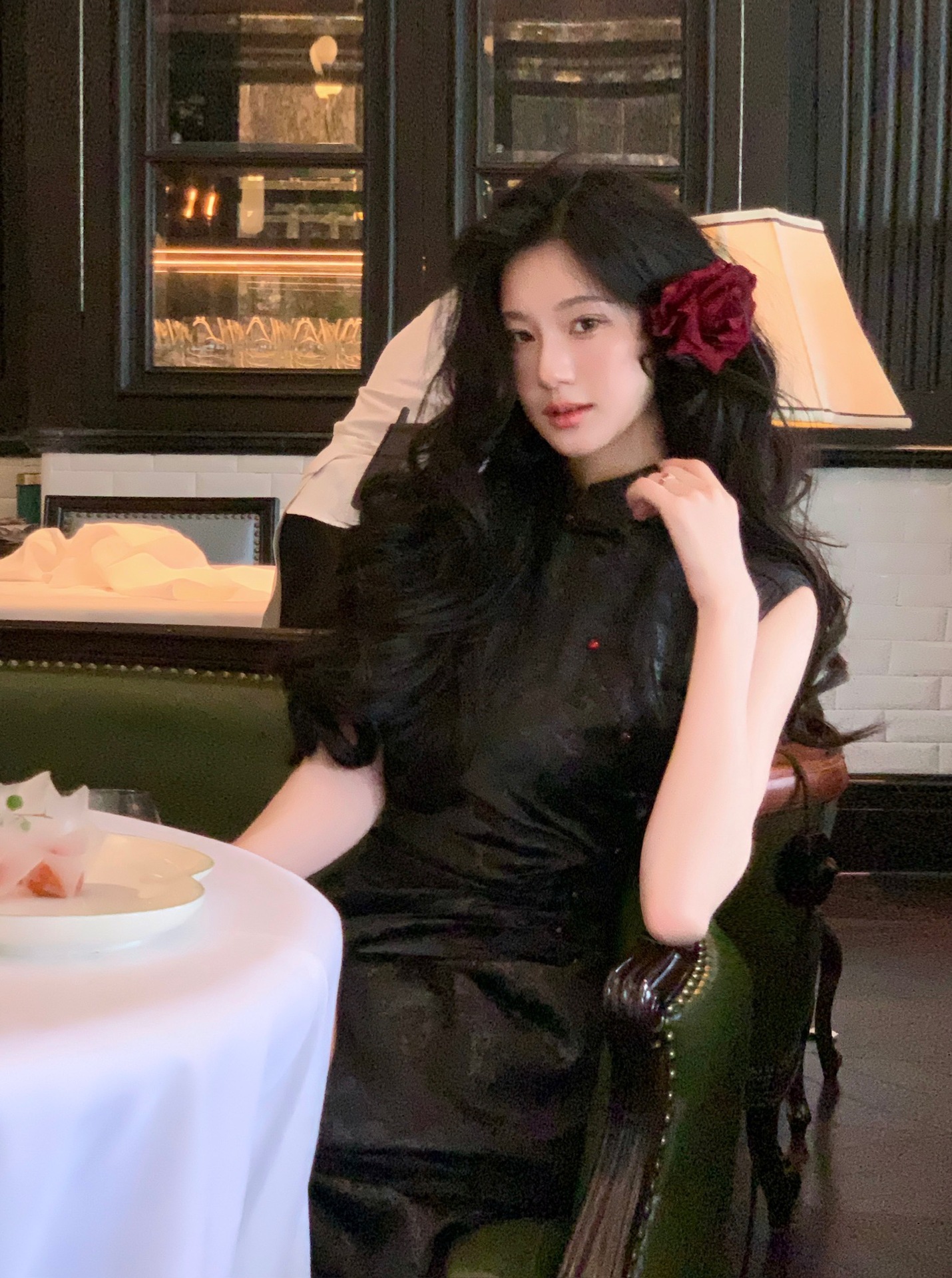 抹茶 2025 春夏新作ピンクジャカード改良チャイナドレスエレガントガール新作チャイナドレス