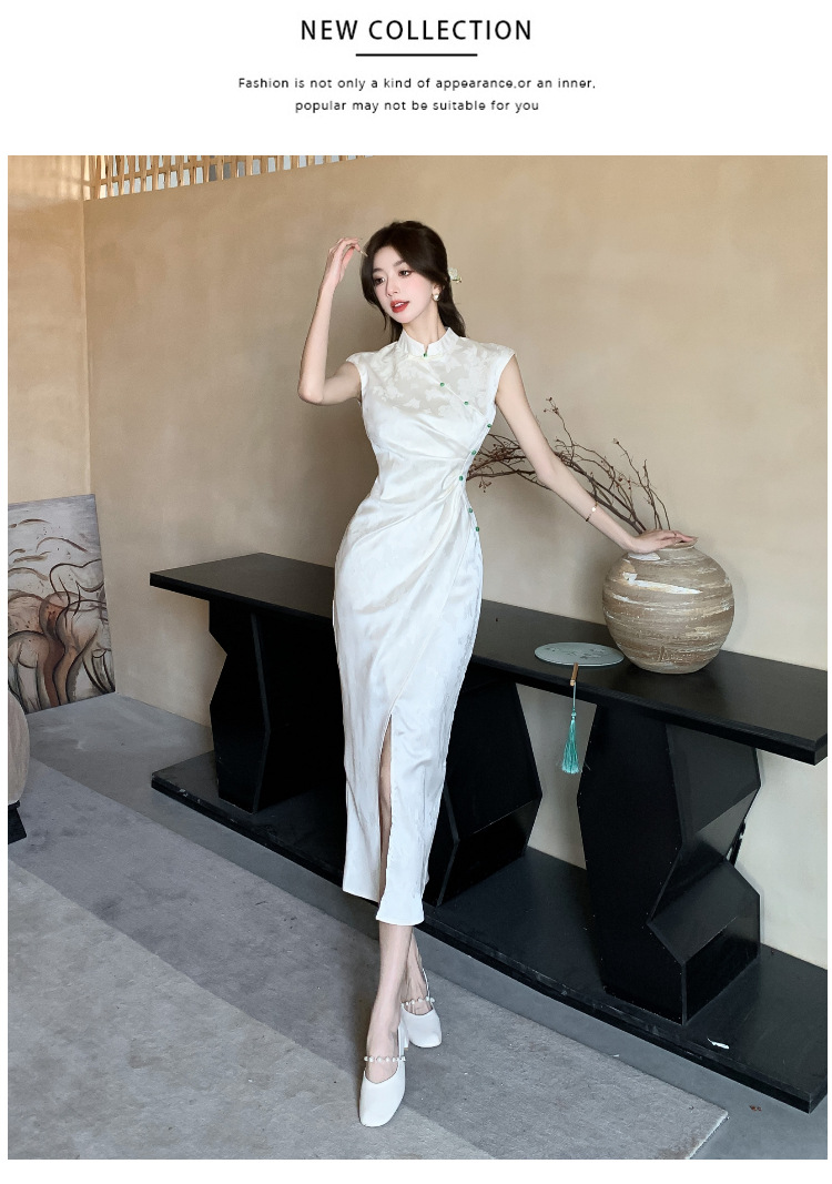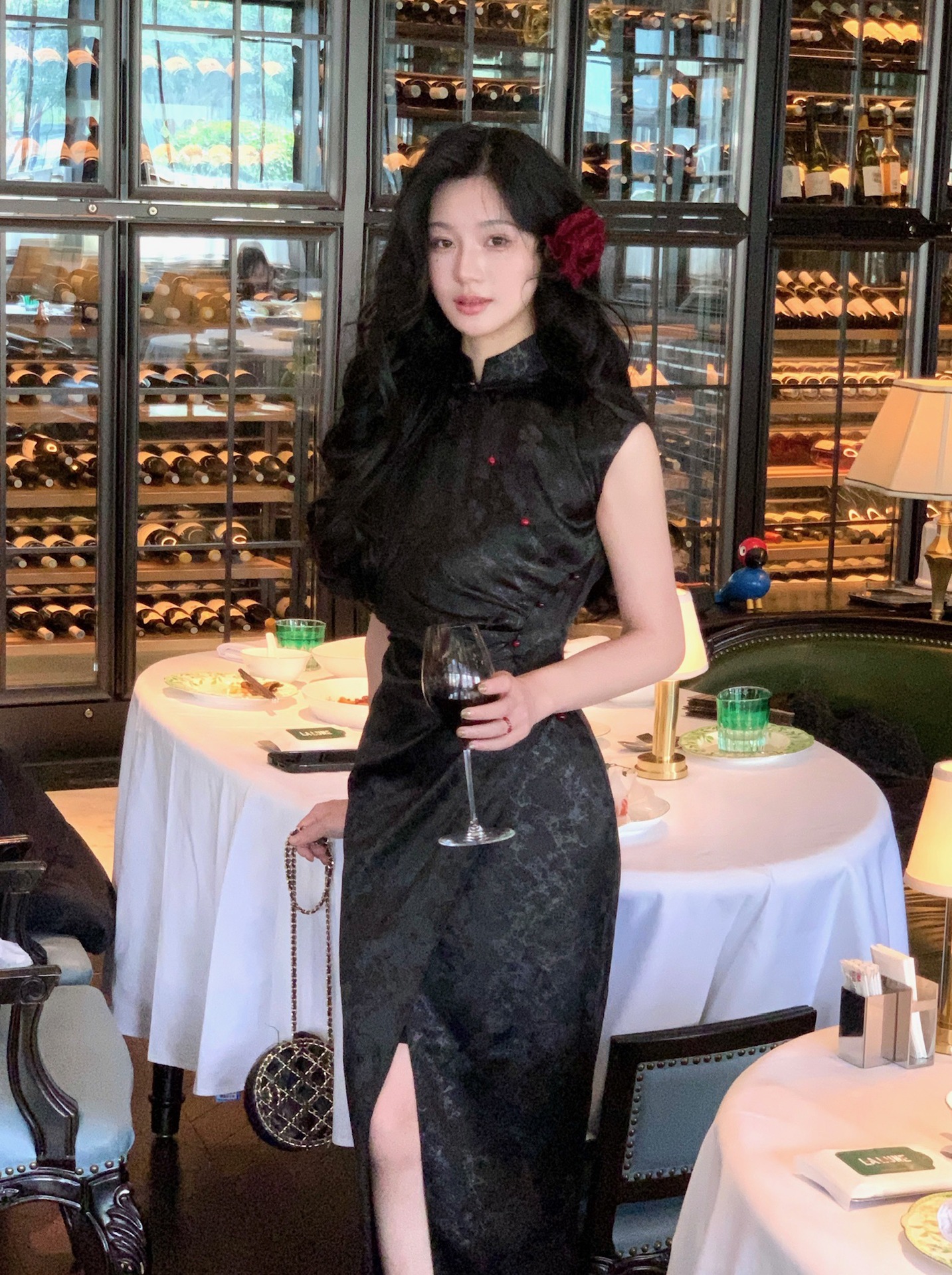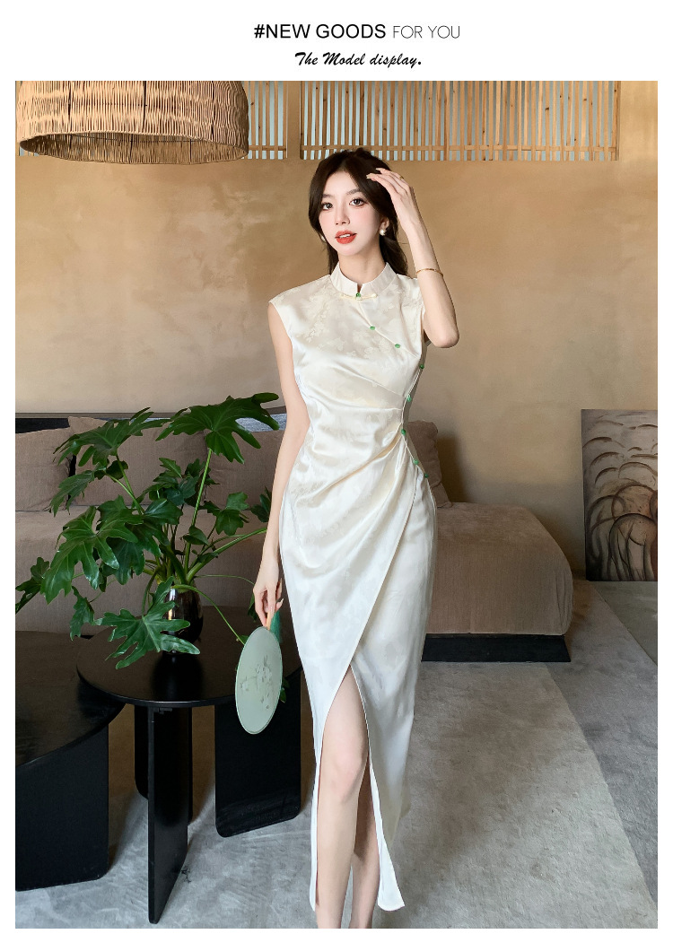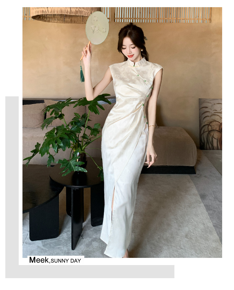 【繁華夢】新中国式サテンワンピース高級感ジャカードノースリーブオープン改良チャイナドレス