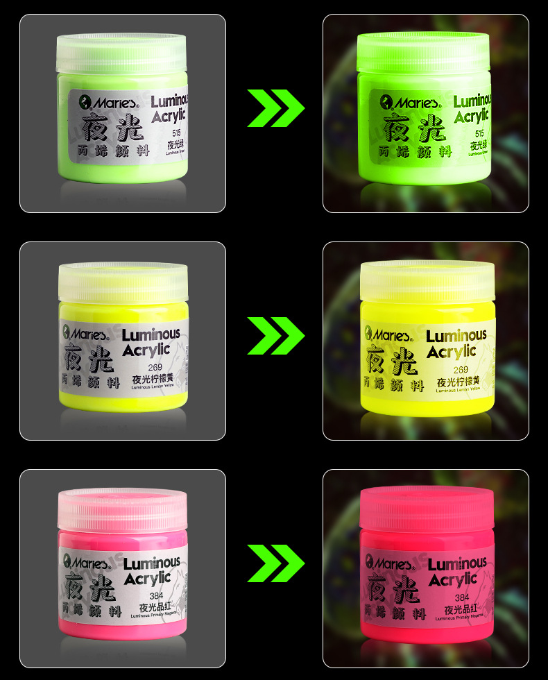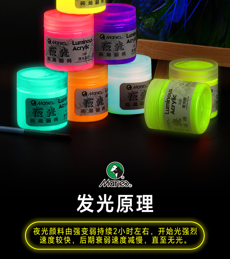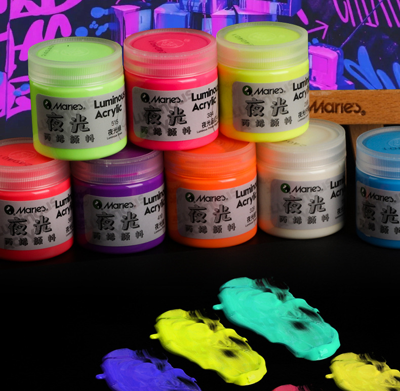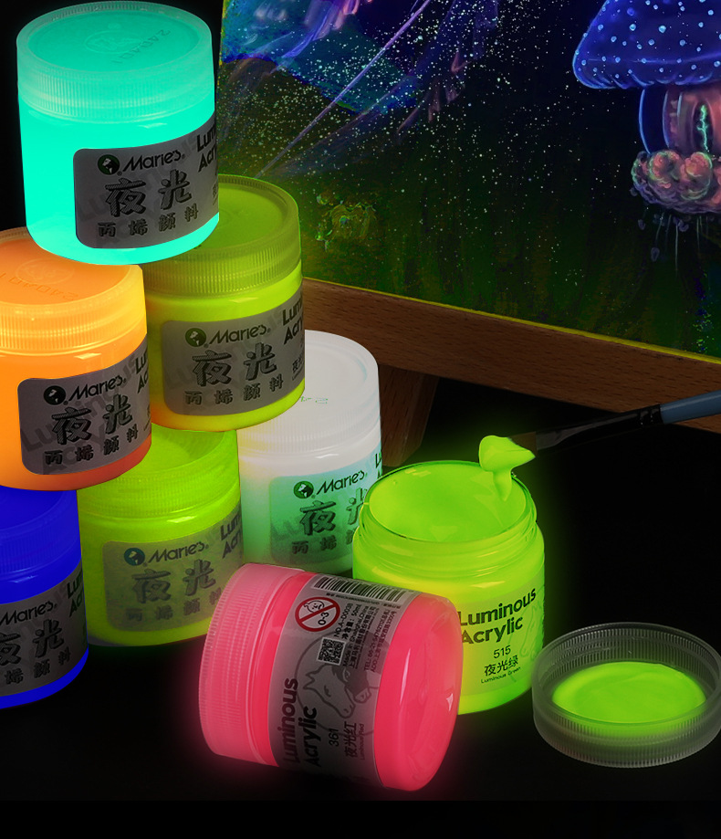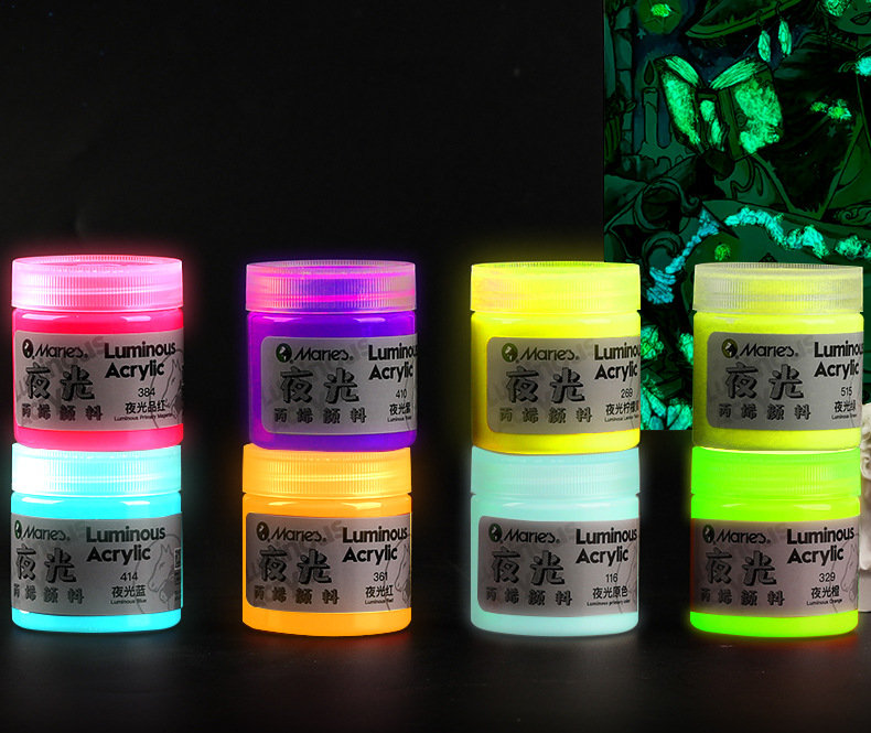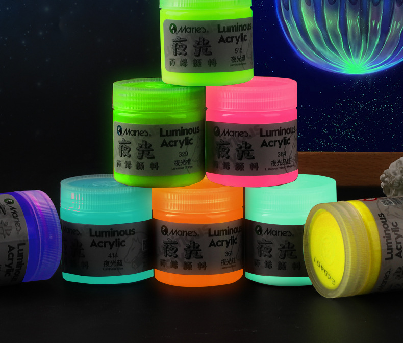 マリ夜光アクリル顔料50ml手描き落書きDIY創作蛍光発光塗料絵画服大缶