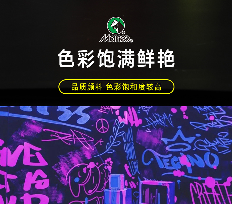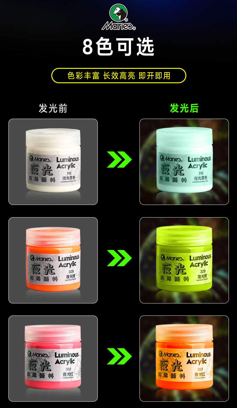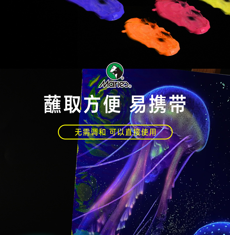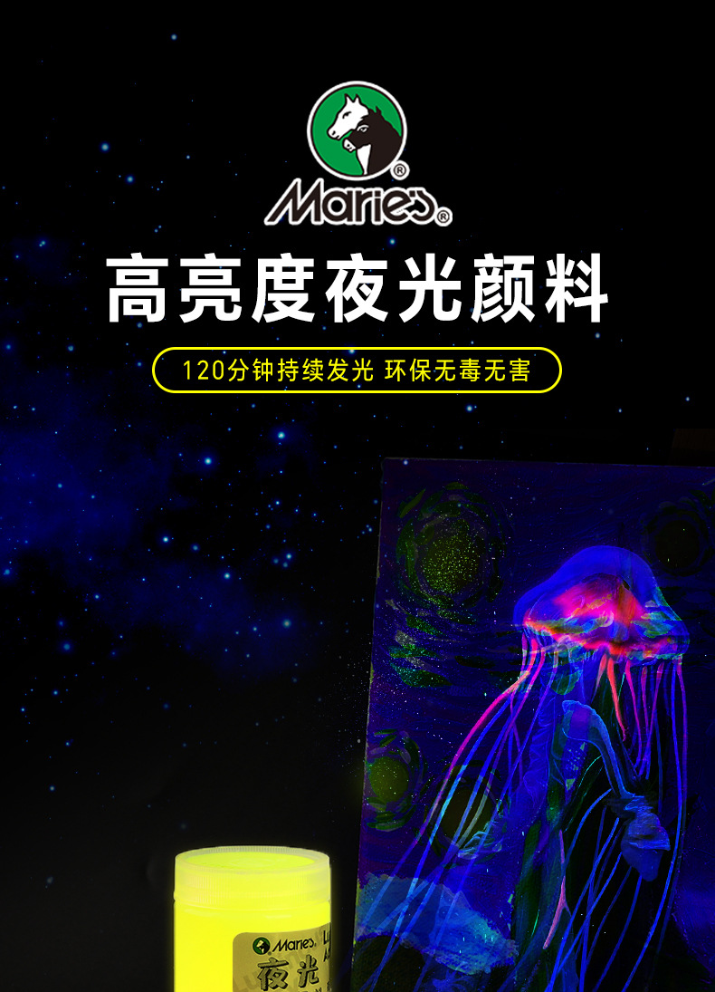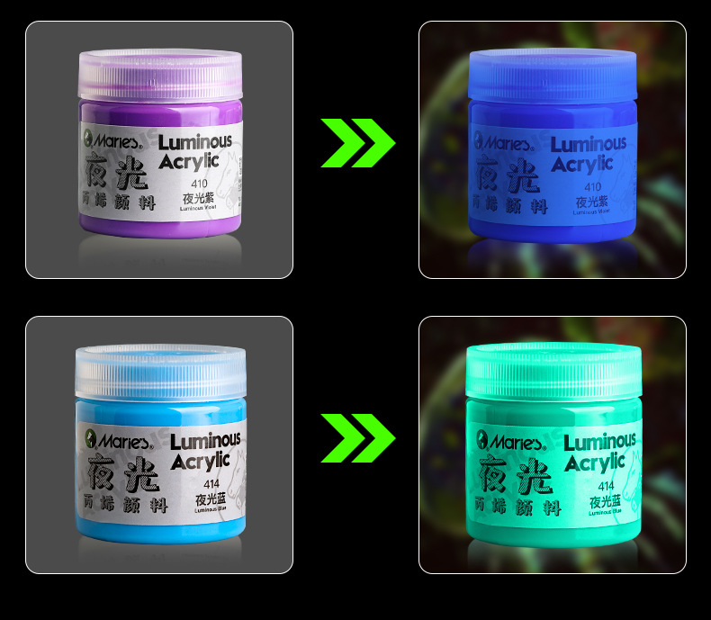マリ夜光アクリル顔料50ml手描き落書きDIY創作蛍光発光塗料絵画服大缶