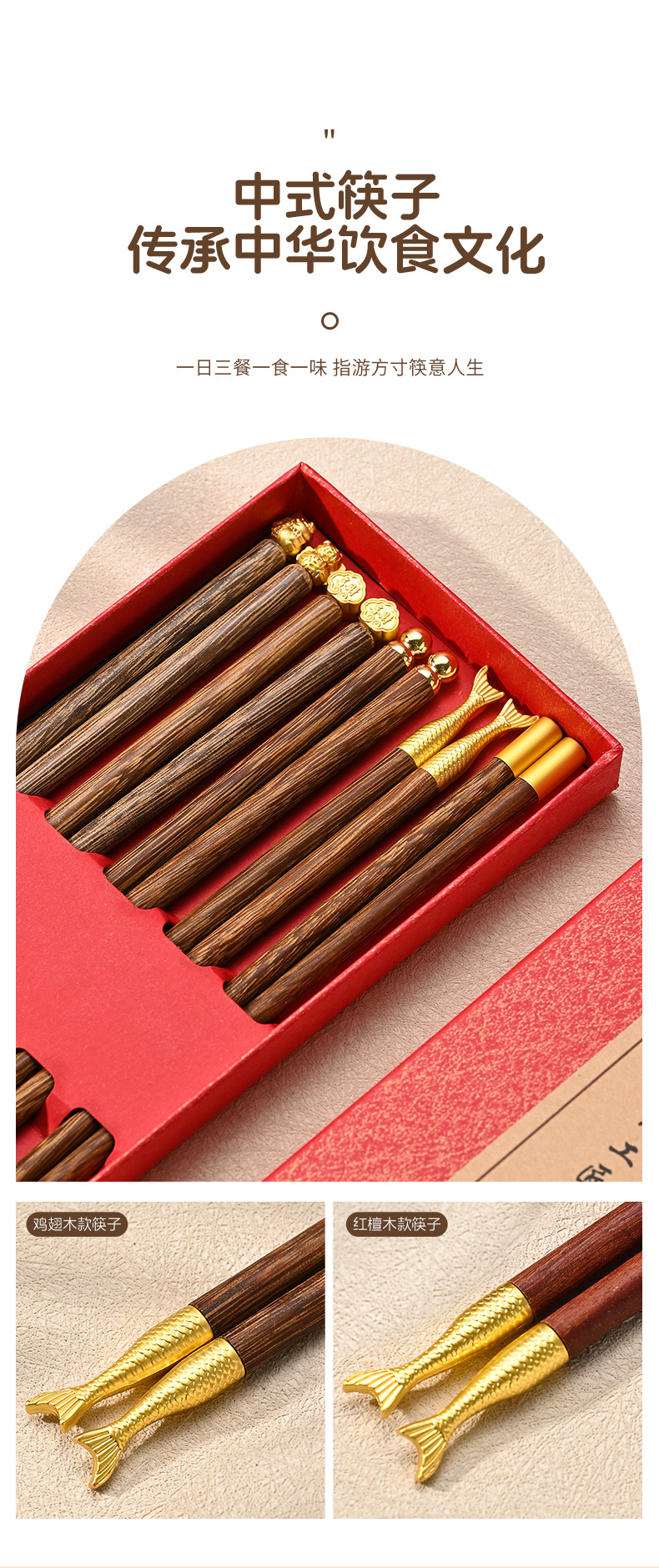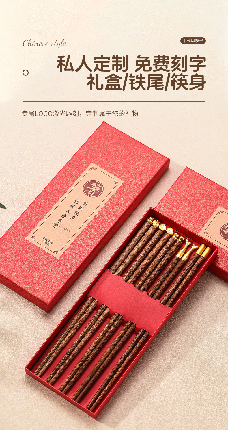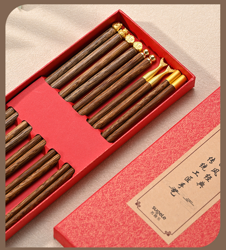 お土産のギフトボックス五福家庭用箸実木手羽木紅檀木箸無漆無ワックス滑り止めのギフトボックス