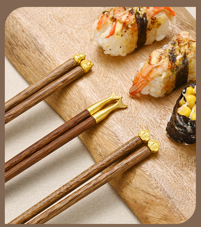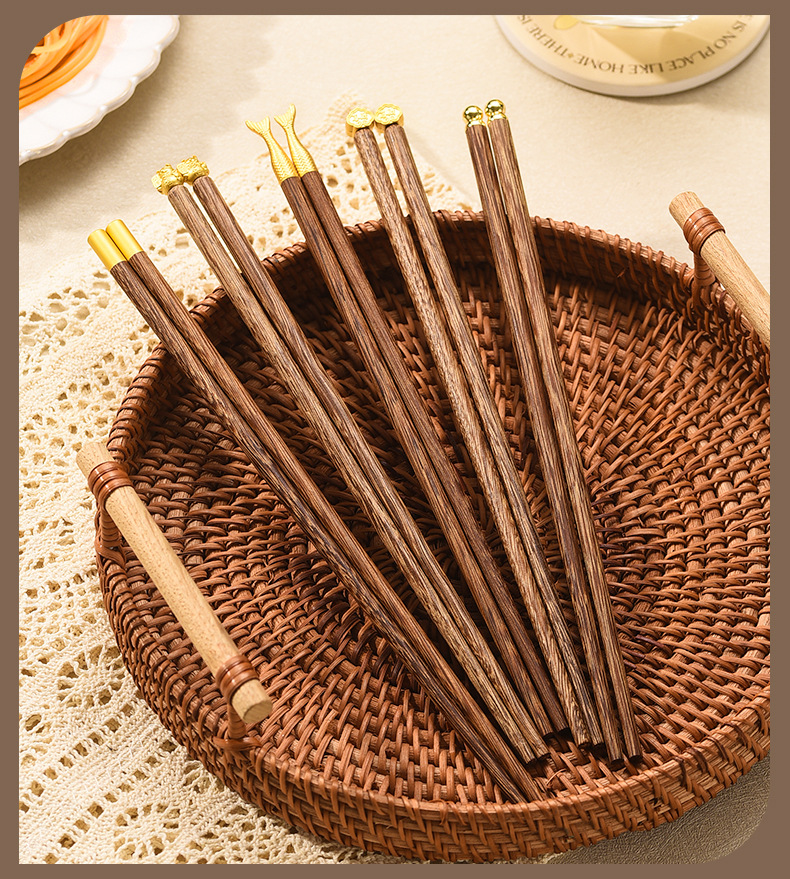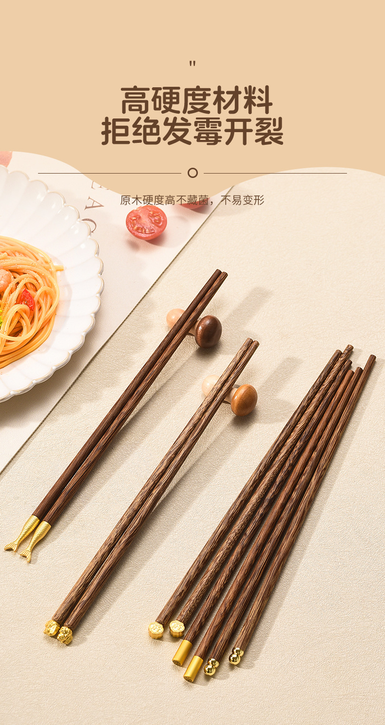 家族写真チキンウィングウッド箸、家庭用滑り止め無垢材紫檀抗菌防カビマホガニー箸、カスタム卸売