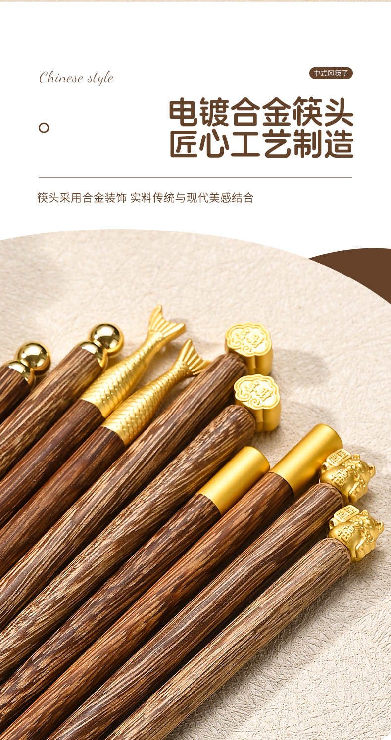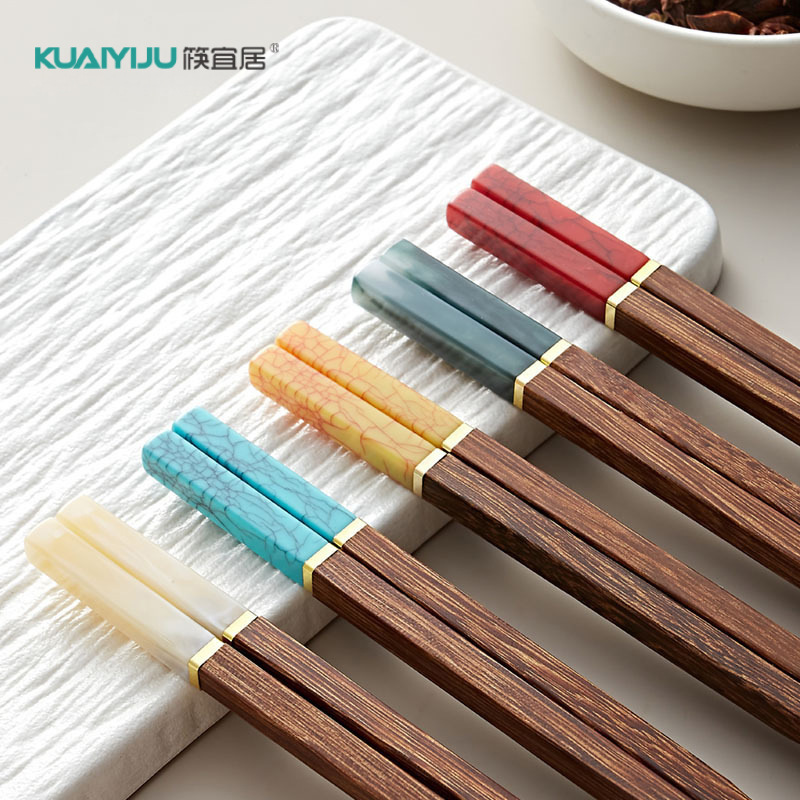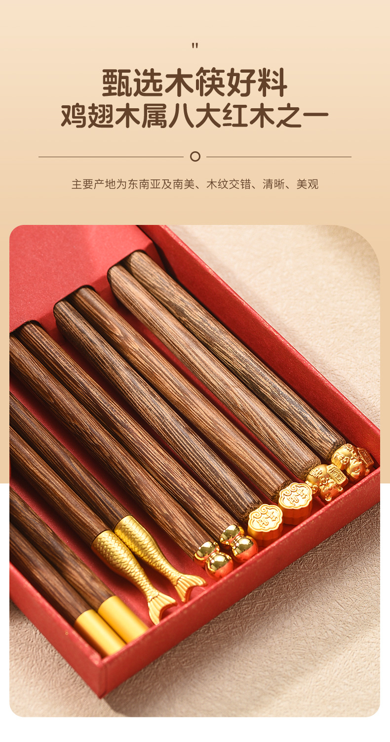 玉石鸡翅木筷子家用电商5双装高颜值分餐新款拼接红檀木筷子批发