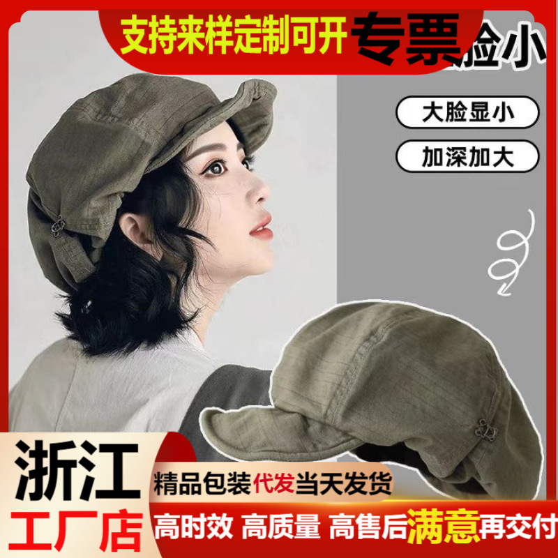春秋季新款设计师自留款大版显脸小日系文艺帽子女复古画家贝雷帽