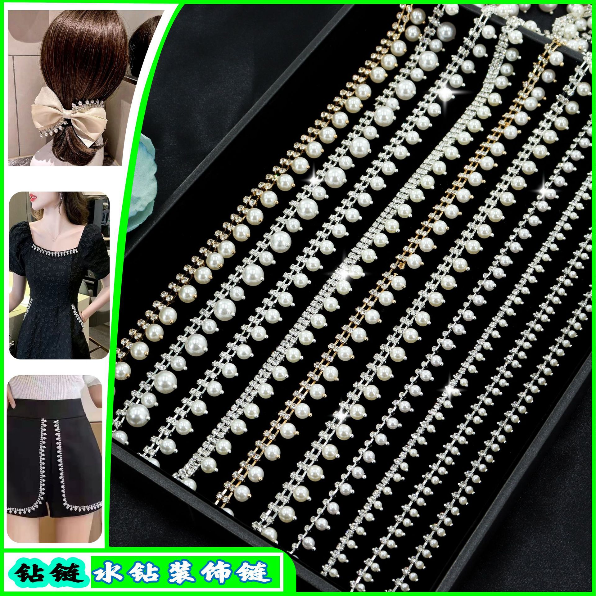 新しいパールチェーン、ダイヤモンドチェーンジュエリー、フリンジ付きラインストーンアクセサリー、爪チェーン、衣類、バッグ、DIYアクセサリー、多用途