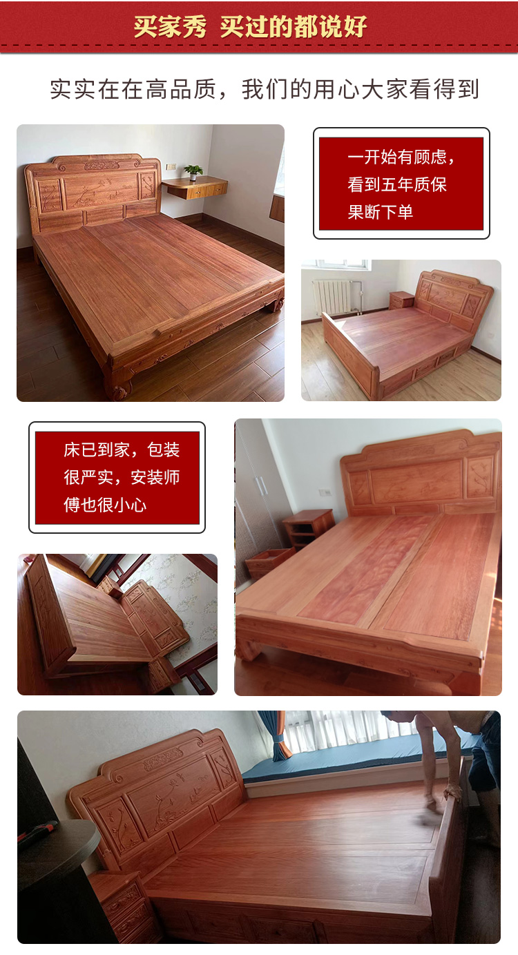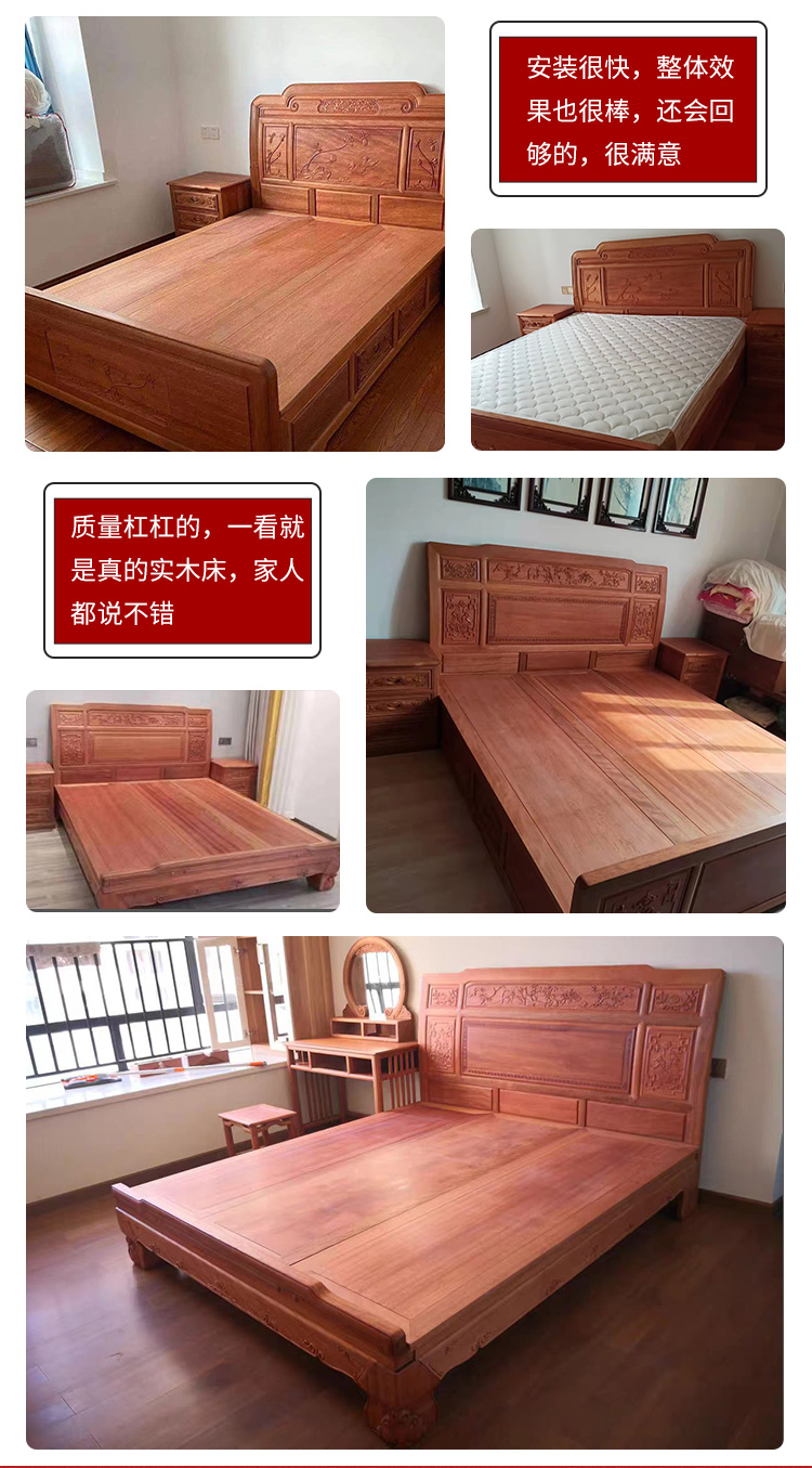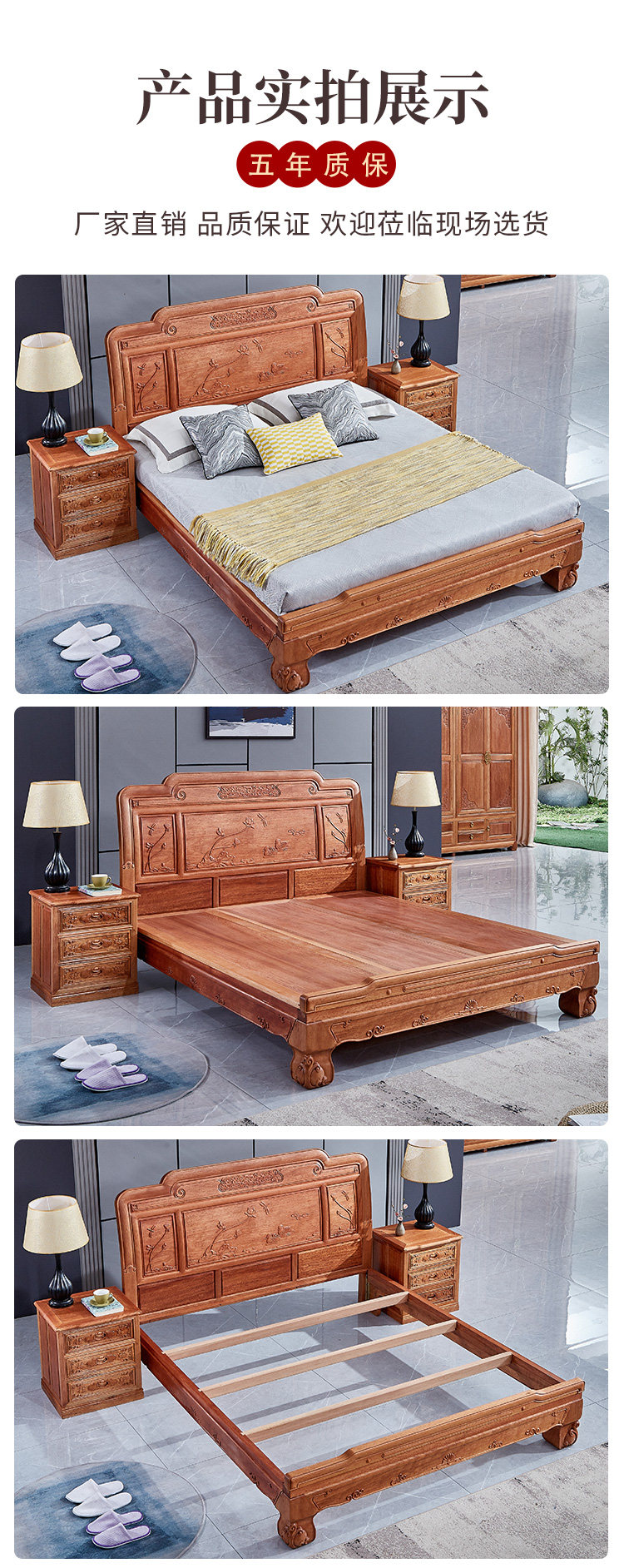 W 7紅木床花梨木1.8メートル大ベッド中国式明清古典主臥ツインベッド1.5メートル全実木床結婚