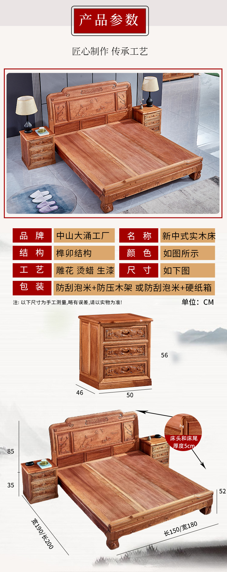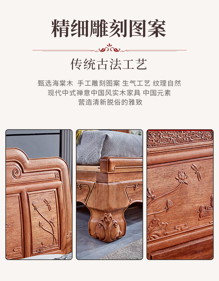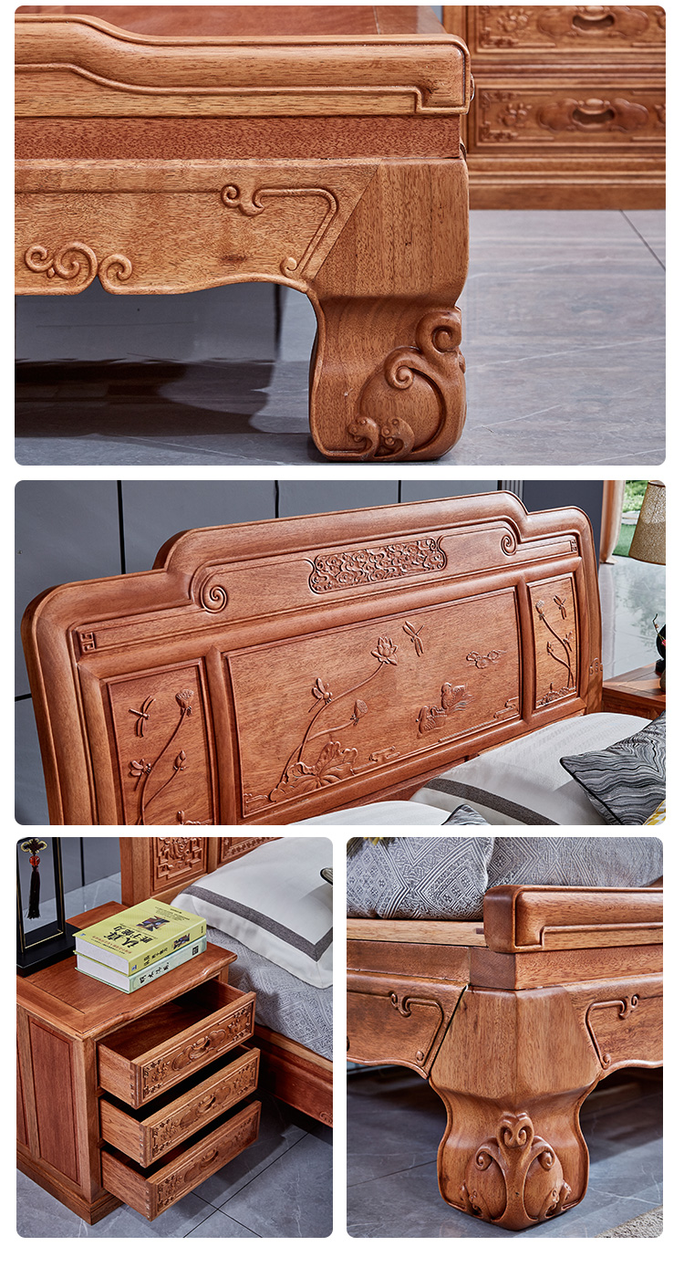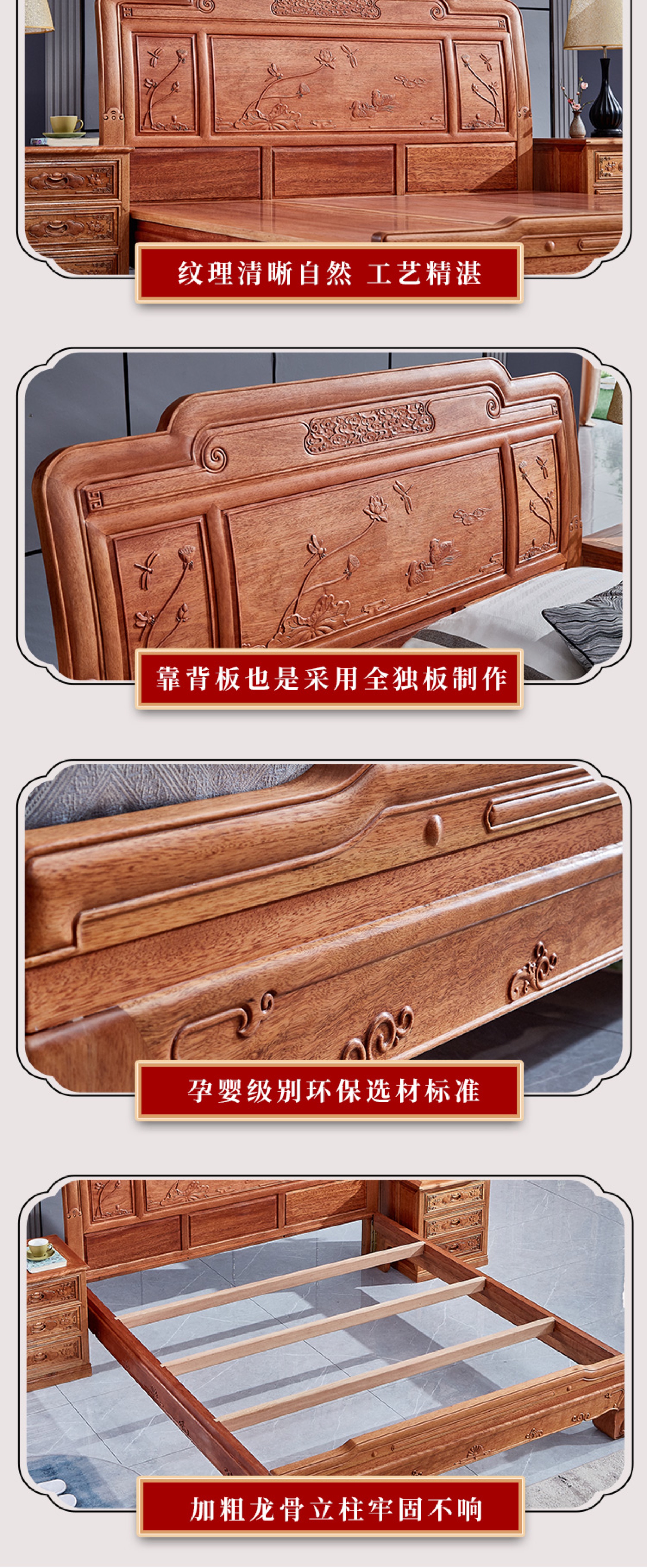 W 7紅木床花梨木1.8メートル大ベッド中国式明清古典主臥ツインベッド1.5メートル全実木床結婚