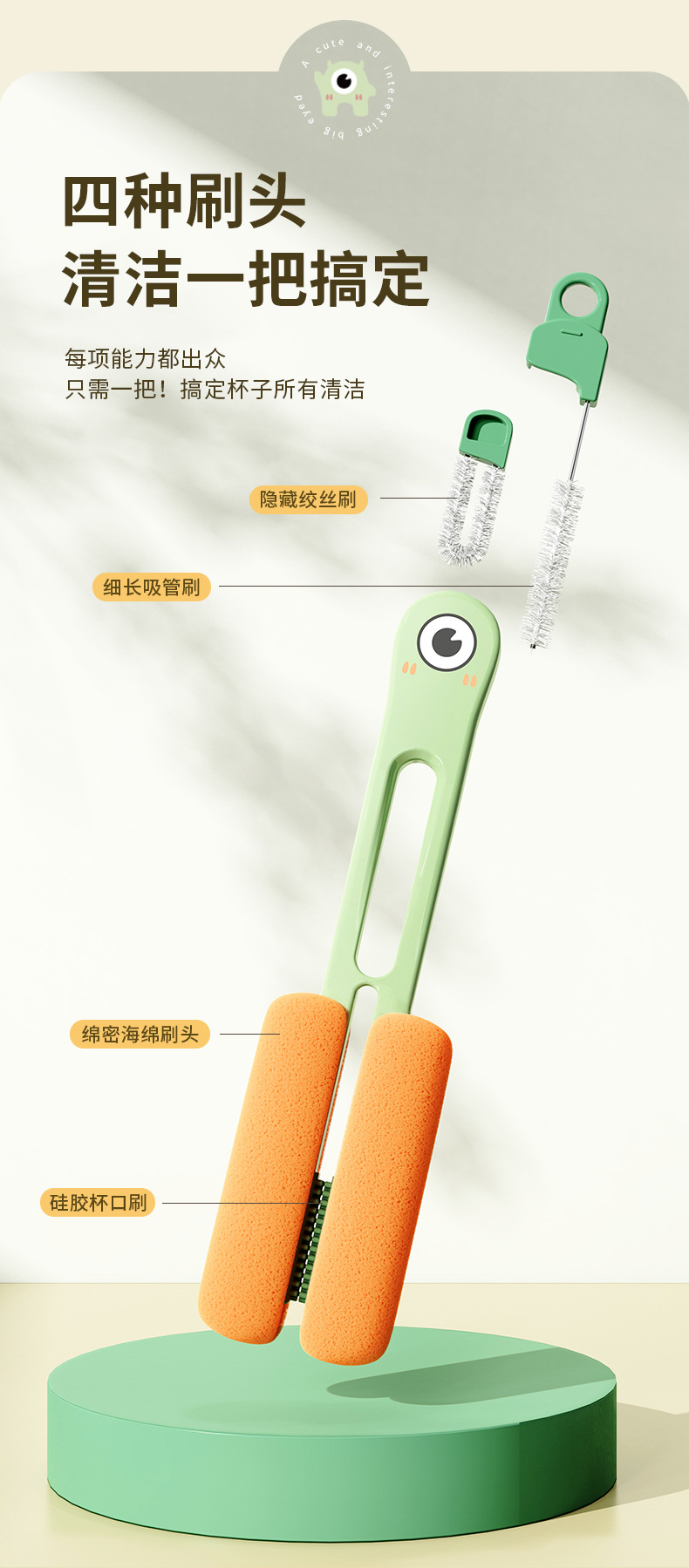 大きな目の双頭のコップはコップを洗ってブラシを洗う専用の四合一多機能のコップの台所を洗ってコップの蓋をきれいにします。