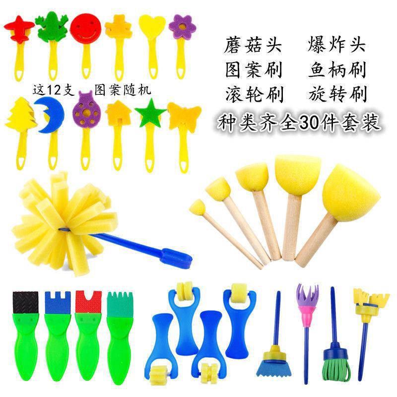 子供用スポンジ印鑑美術絵画セットコース材料バッグ絵画ツールブラシ拓印水彩粉