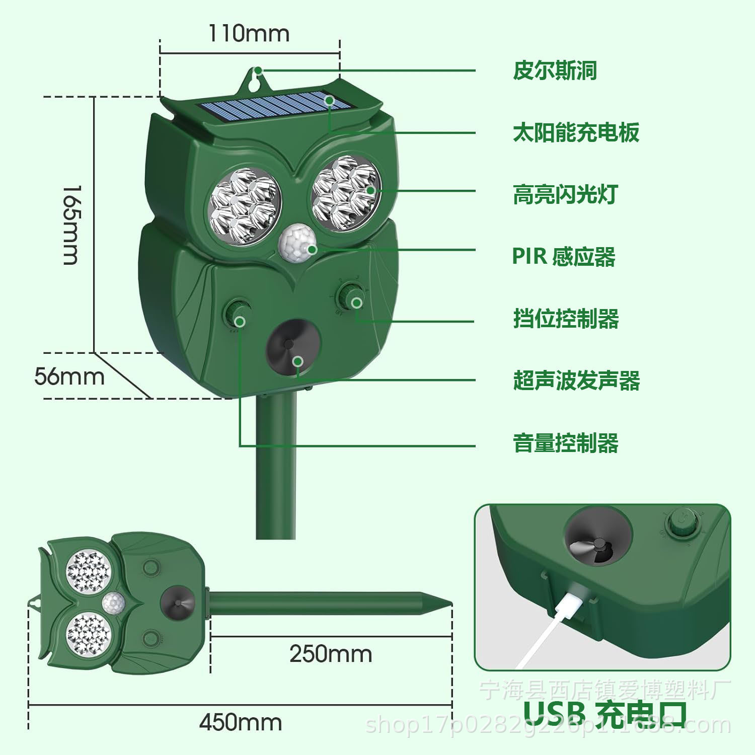 新型超音波動物駆除器蛇駆除器赤外線誘導鳥駆除犬駆除器獣駆除器太陽光駆除器