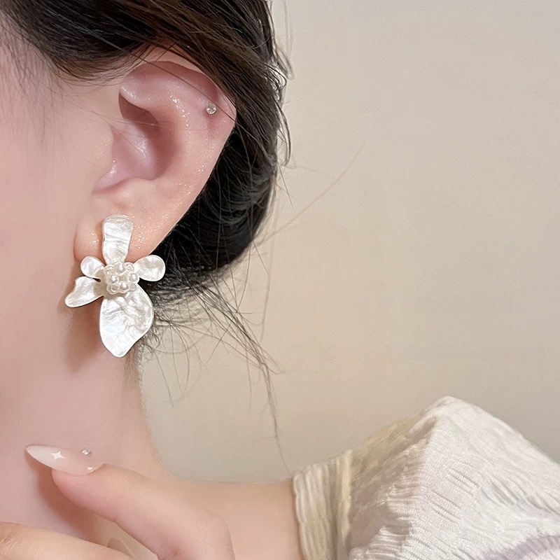 桜花粉マントー真珠ピアス施家気質高級感S925銀針イヤリング韓系気質百合耳飾り