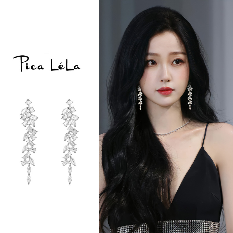 925銀針の気質の長いタイプのフリンジクリスタルの葉のイヤリングの女性ins潮の爆発的なイヤリングの女性韓国のイヤリングのイヤリング