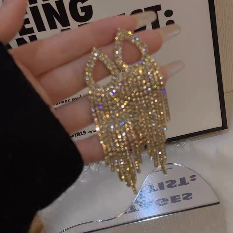 韓国のダイヤモンドの長いタイプのフリンジイヤリングの丸い顔はやせている気質を見せます。