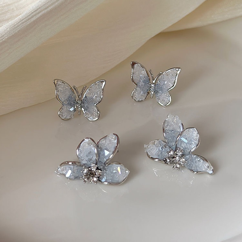 大衆デザイン感高級グラデーションブルー蝶ピアス夏気質軽豪華多変化蝶耳飾り2023女