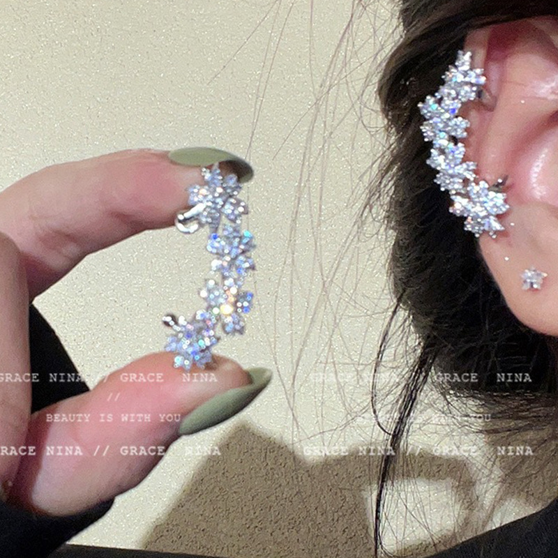 フルドリルの花の耳のクリップの女性の耳の穴がない新婦の耳の骨は高級感の精霊の秋冬のイヤリングの耳飾りの耳掛けを挟みます。