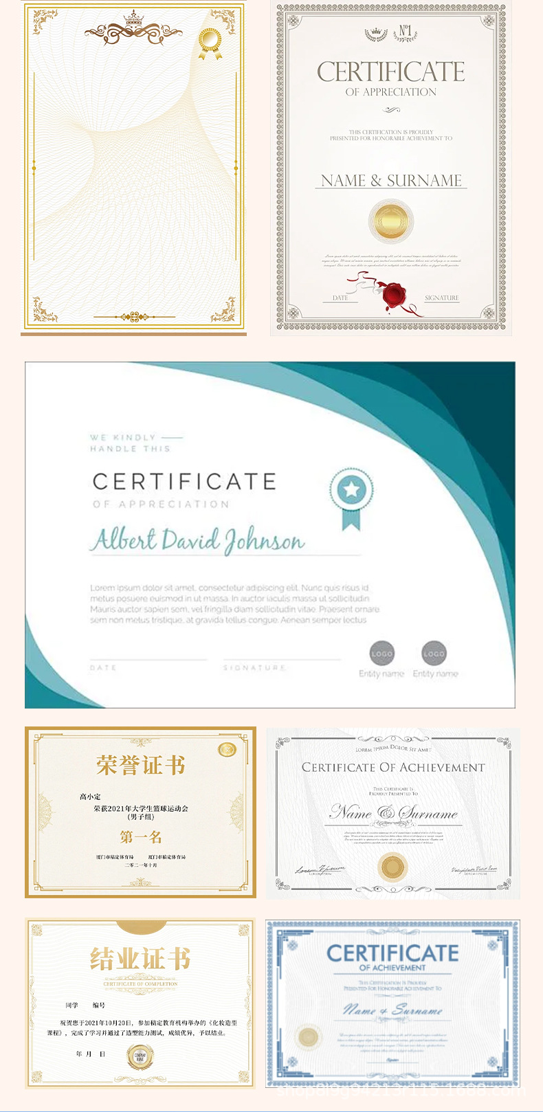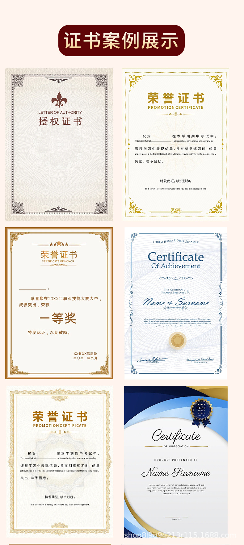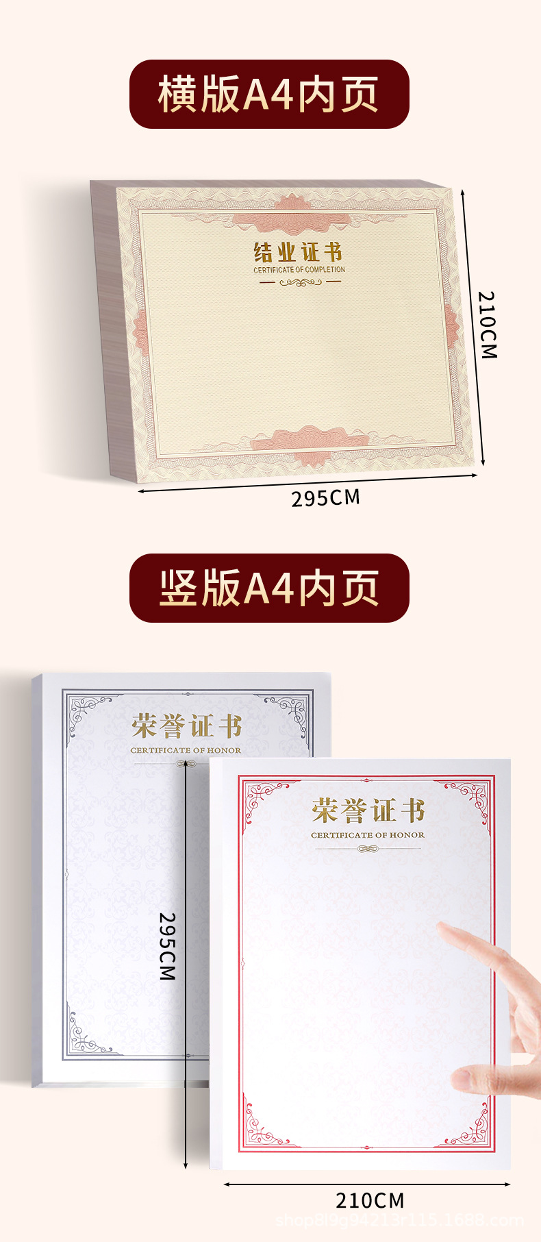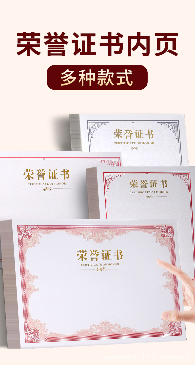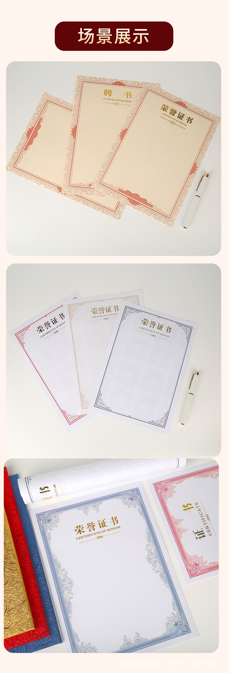 空白箔押しヨーロッパ式内芯受賞証明書内ページ150g双胶紙結納紙栄誉証明印logocx