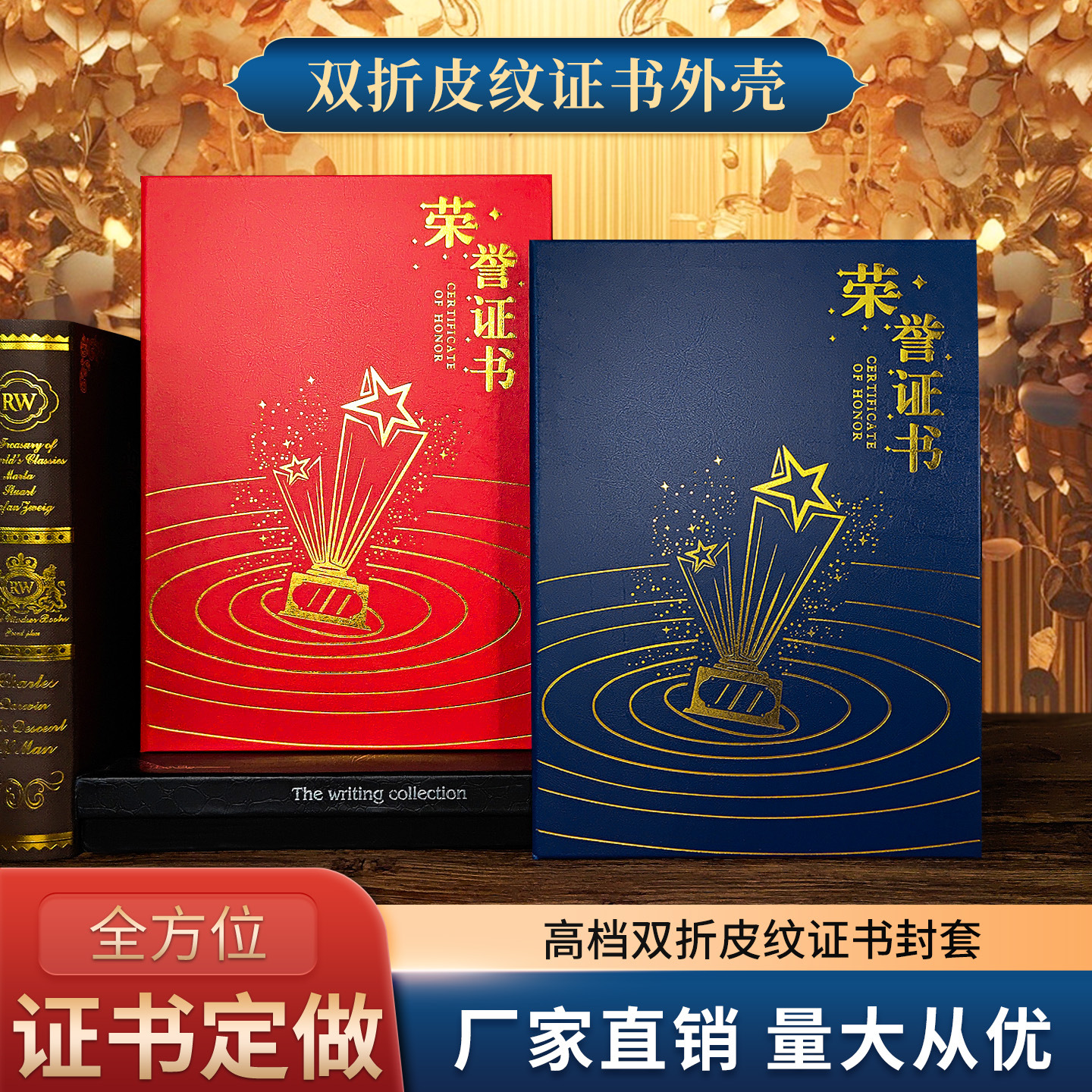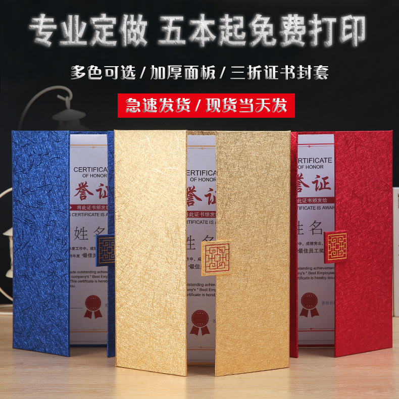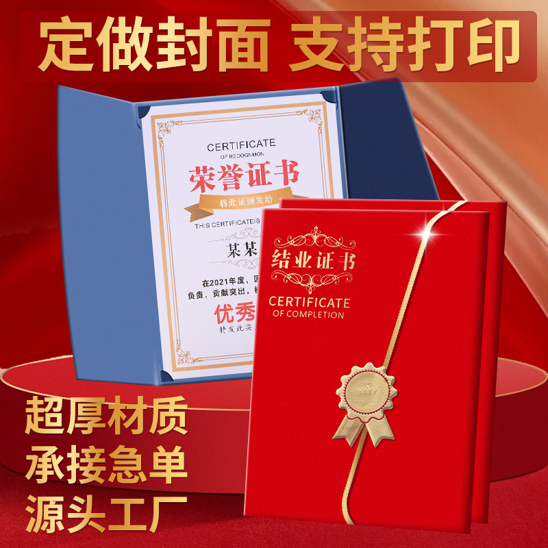 名誉証明書、就職状、カスタム証明書、パール光沢表紙、卒業証書製作、表彰状、青色、赤色、A4内側ページ