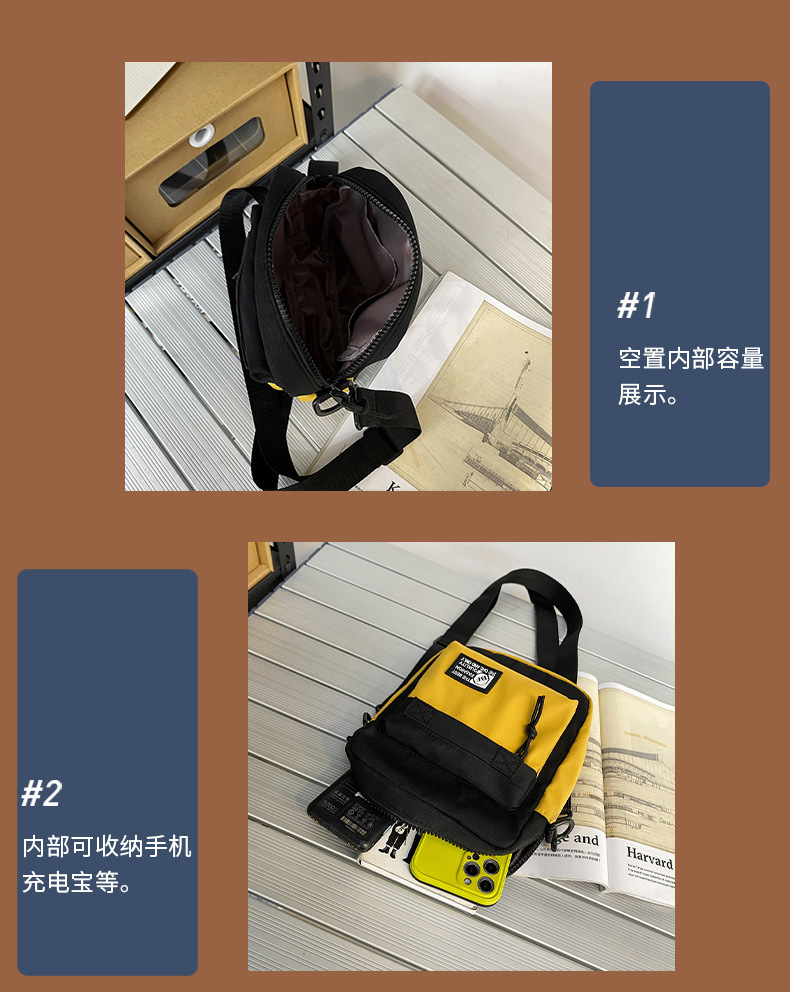 ファッション衝突色日系ins学生斜めショルダーバッグ街拍潮クールシンプルファッション男性シングルショルダーバッグ