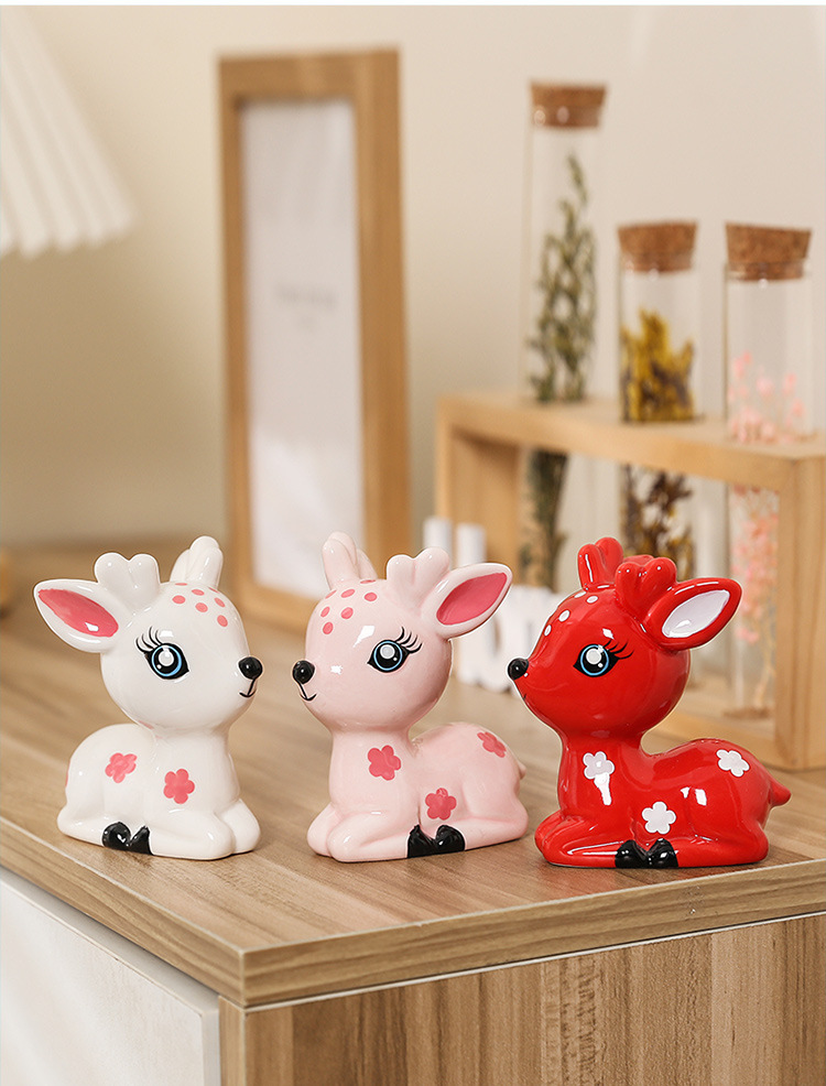 カラー ピンクのかわいい鹿の家の置物,白いかわいい鹿の家の置物,赤いかわいい鹿の家の置物