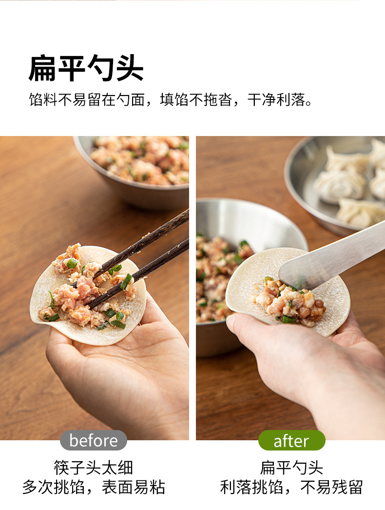 霜山304ステンレスは餡を掘って餃子を包んで饅頭水餃子を包んでいます。