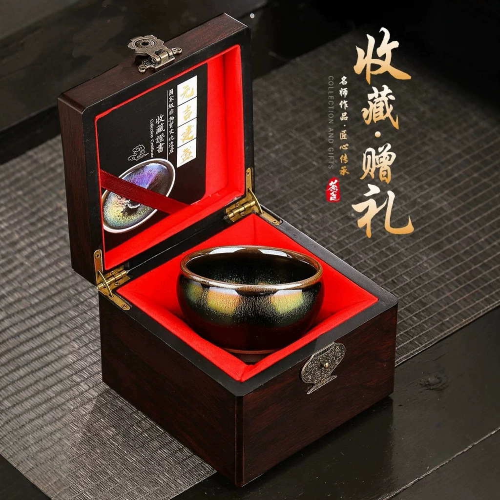 建陽建盏ペアカップギフトセット 油滴鉄胎盏 天目建盏茶杯 黒釉