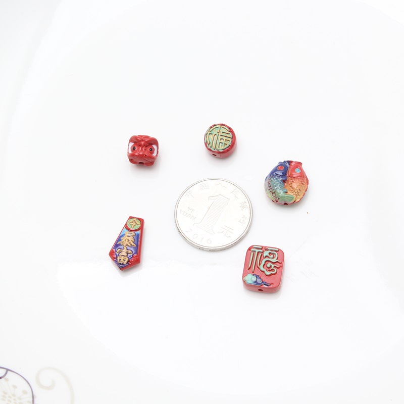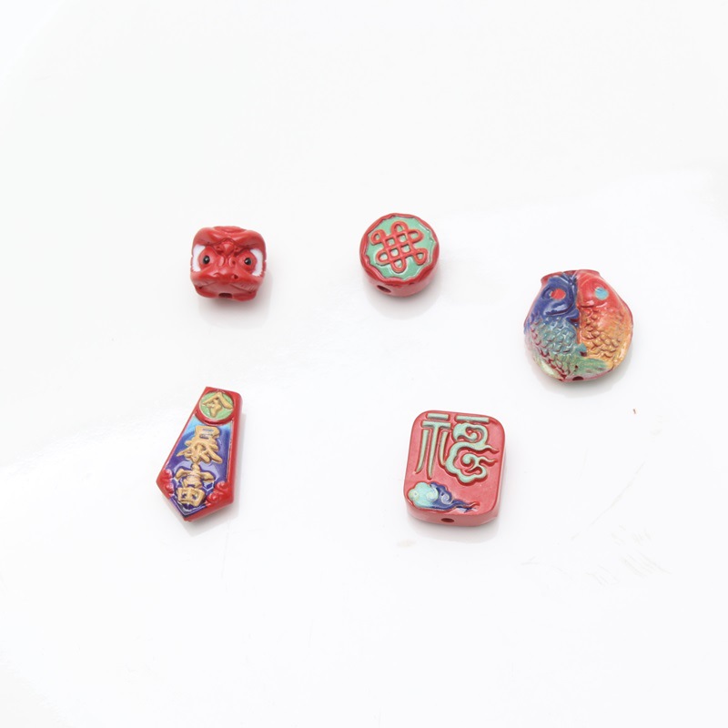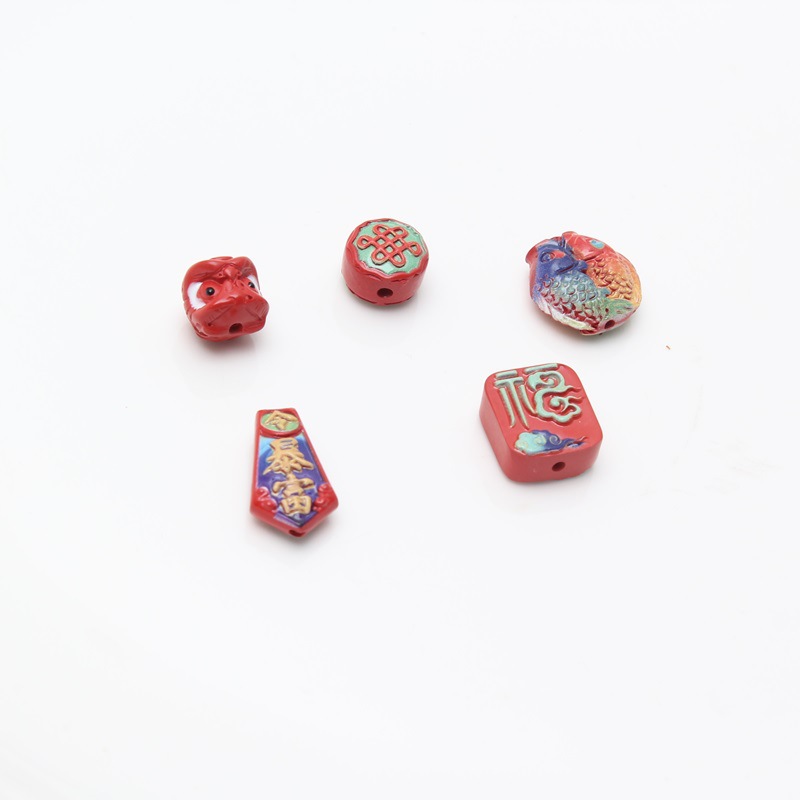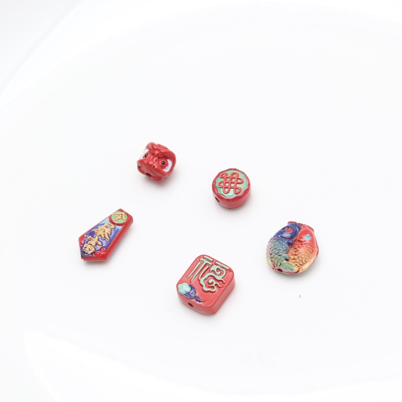 朱砂彩絵覚醒ライオン中国結双魚福字アクセサリーアクセサリー卸売り原鉱高含有量紅砂彩絵